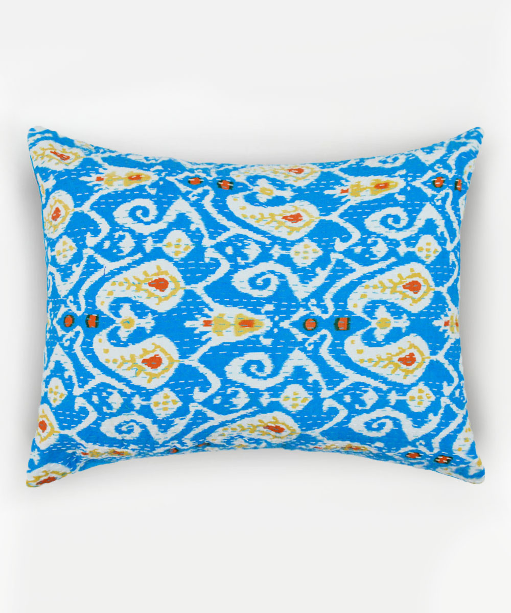 Turquoise Decorative Paisley Ikat Printed Handmade Kantha Standard Pillow Sham Set of 2