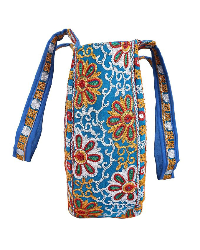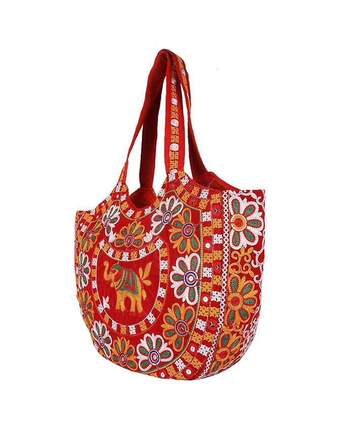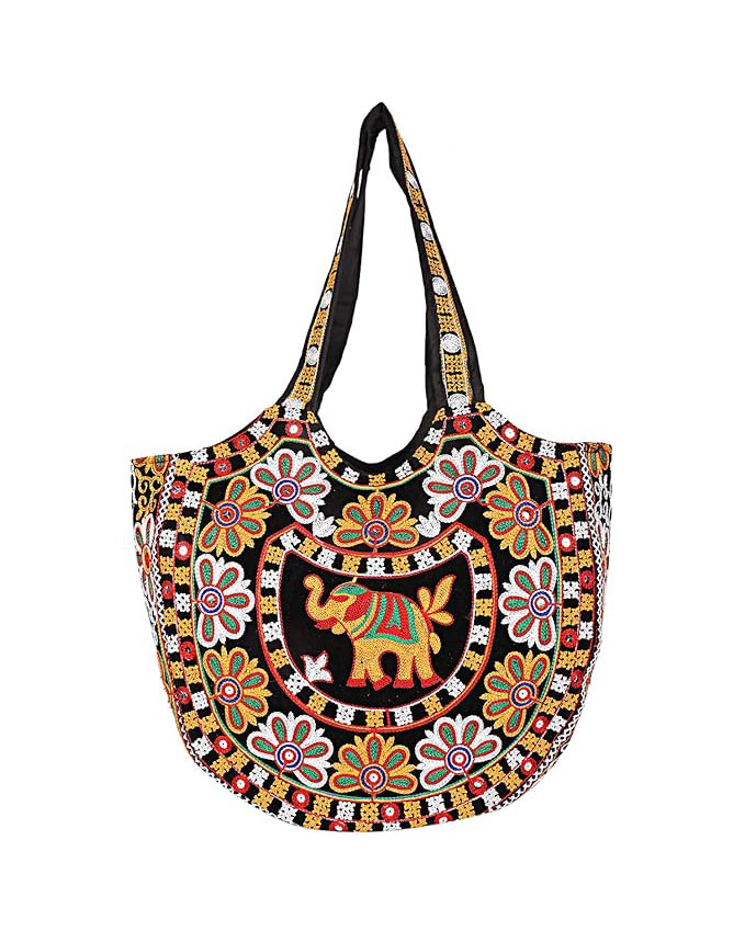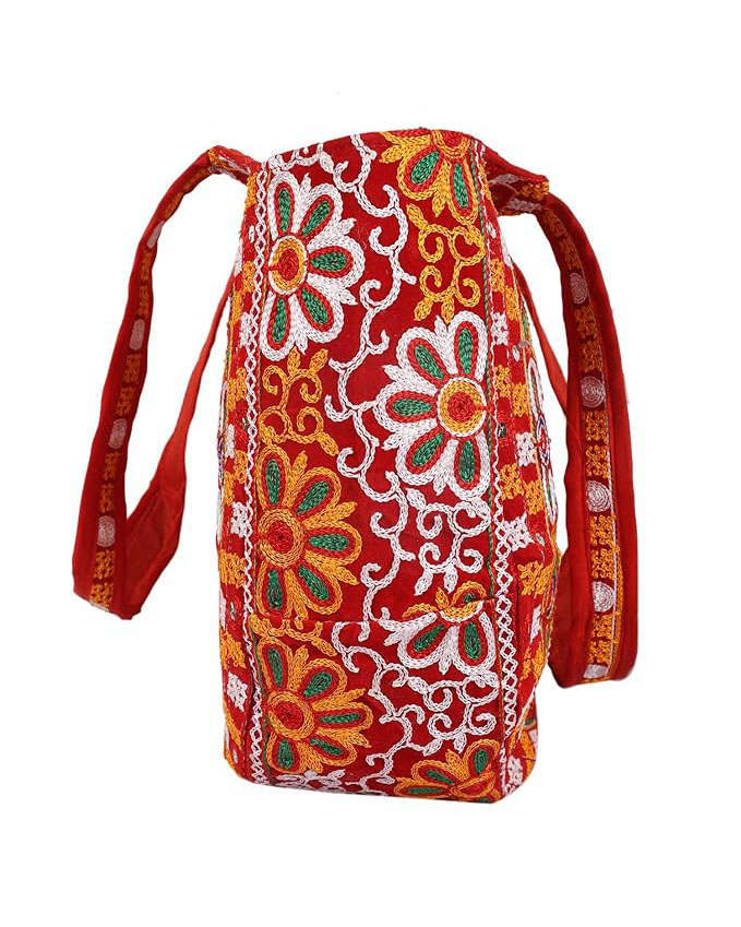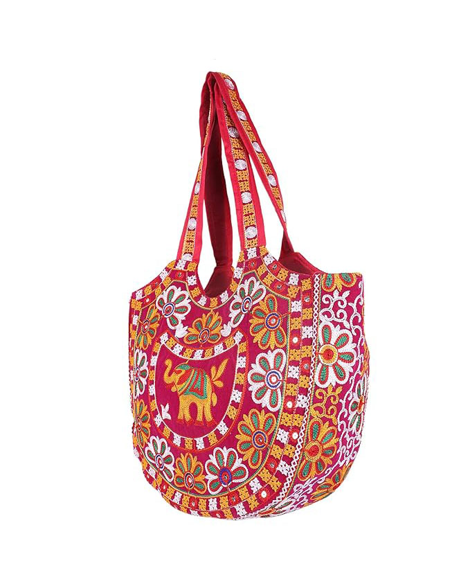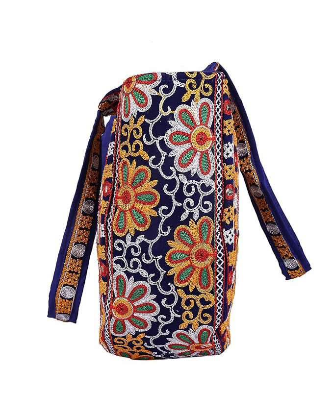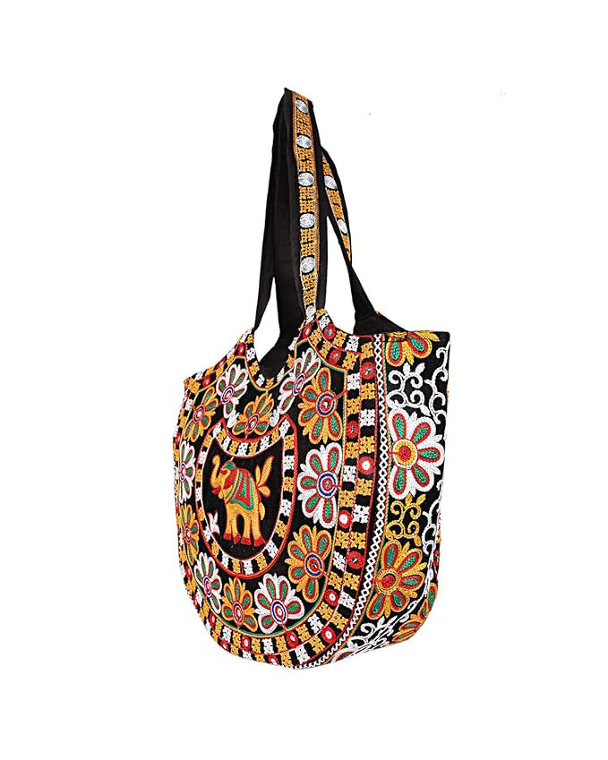 Eco-Friendly handbag is made of a cotton with fine Rajasthani embroidery with mirror work design on it that makes it durable enough to tote around all your things.