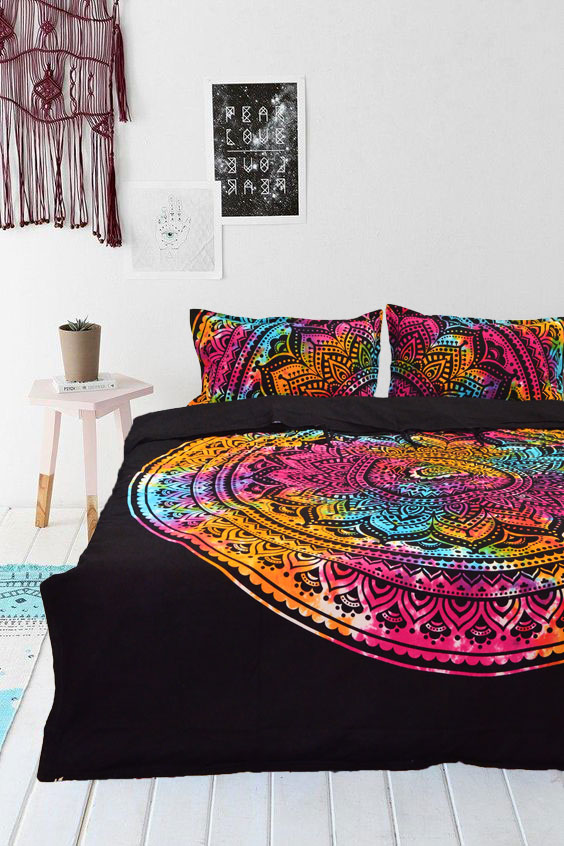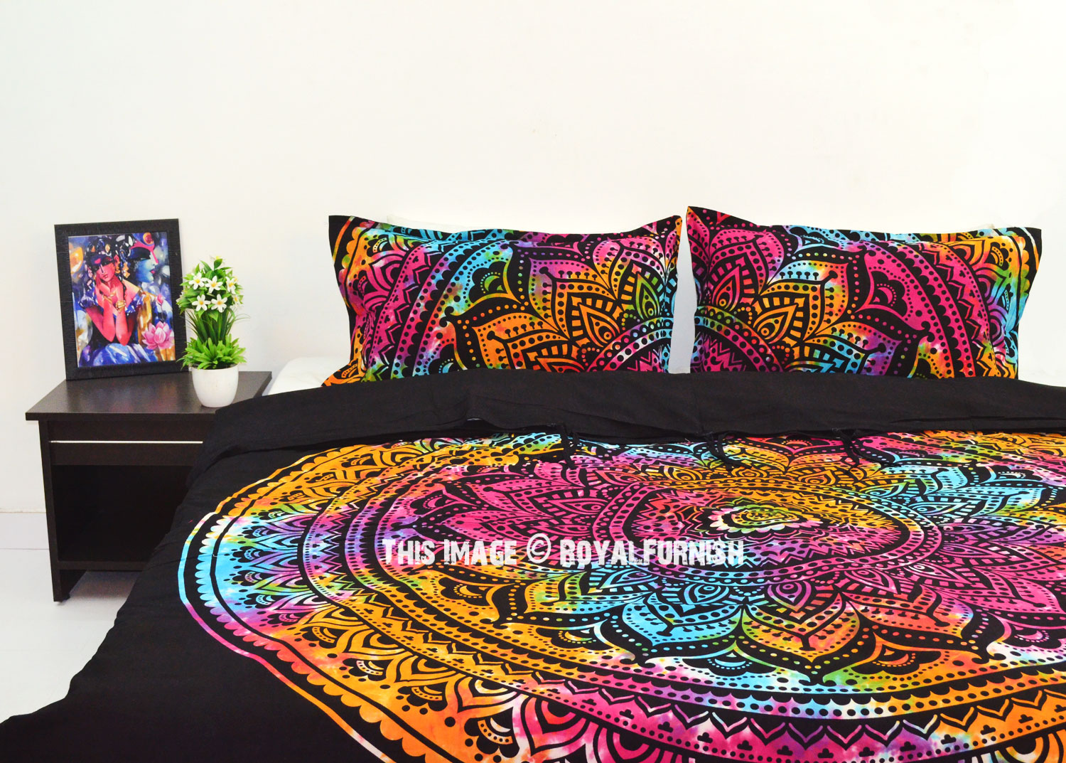 Design 1 Black Multi Tie Dye Hippie Mandala Duvet Covers with Set of Two Pillow Shams