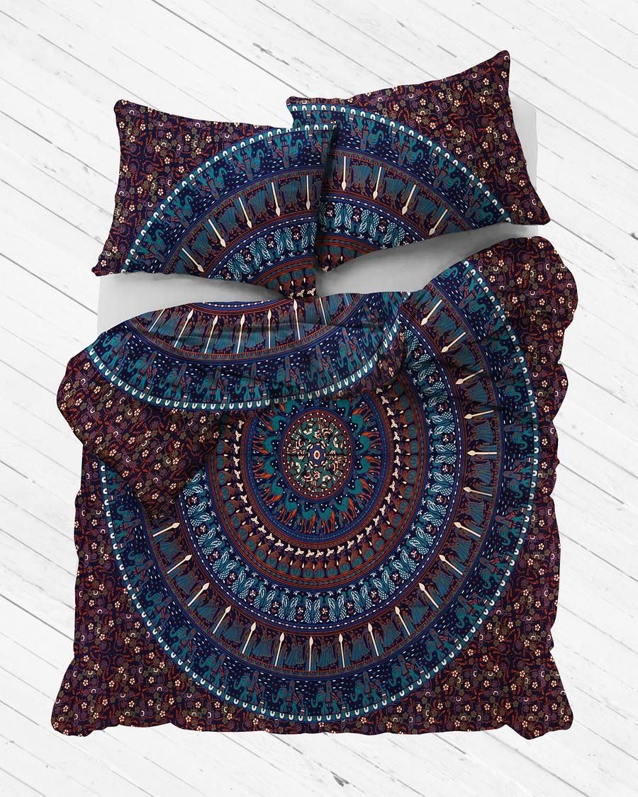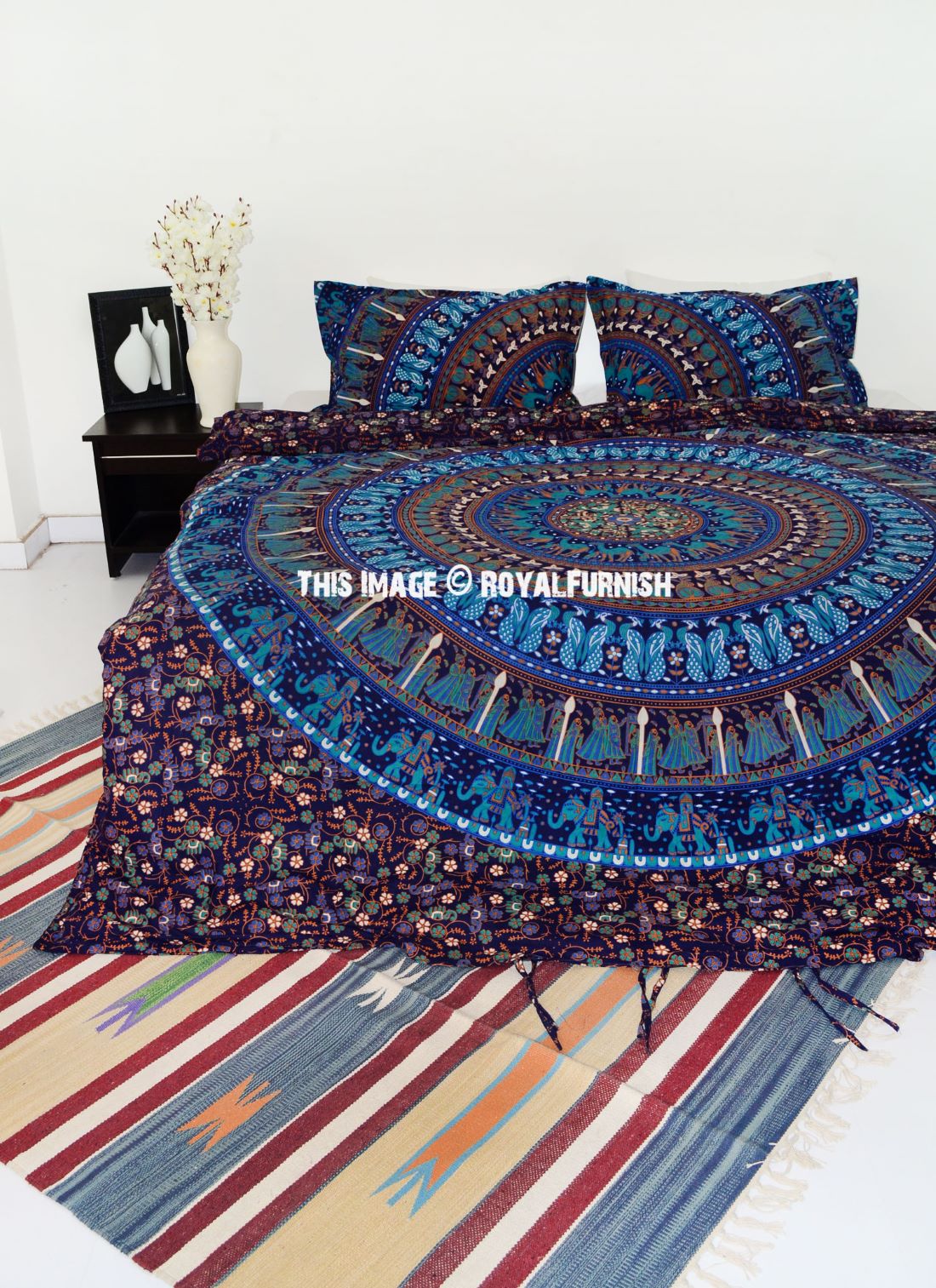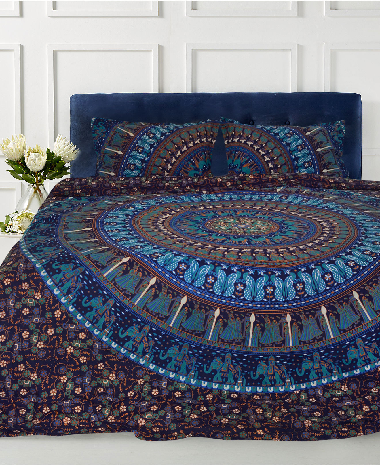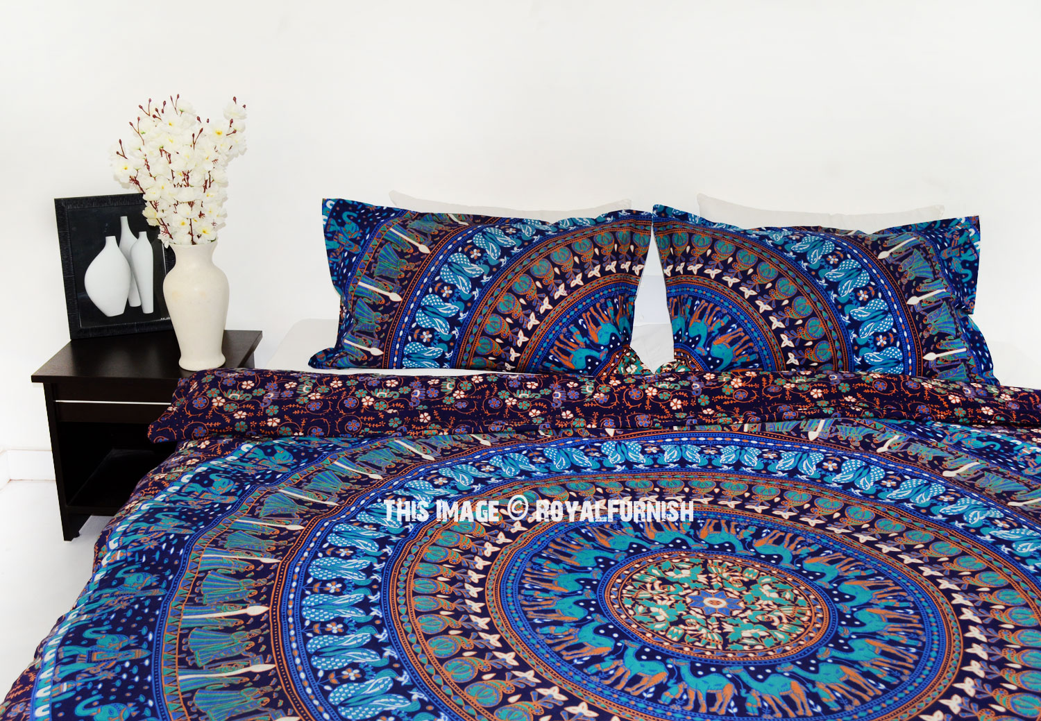 Blue Bohemian Elephant Camel Bedding Mandala Duvet Cover Set with 2 Pillow Cover