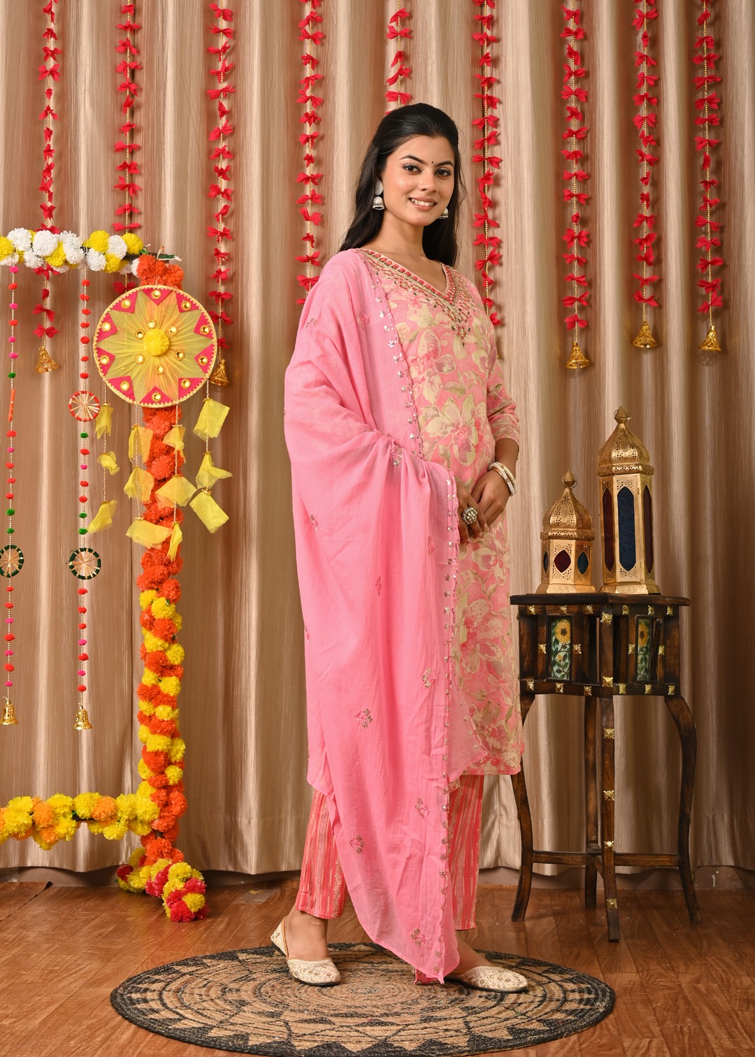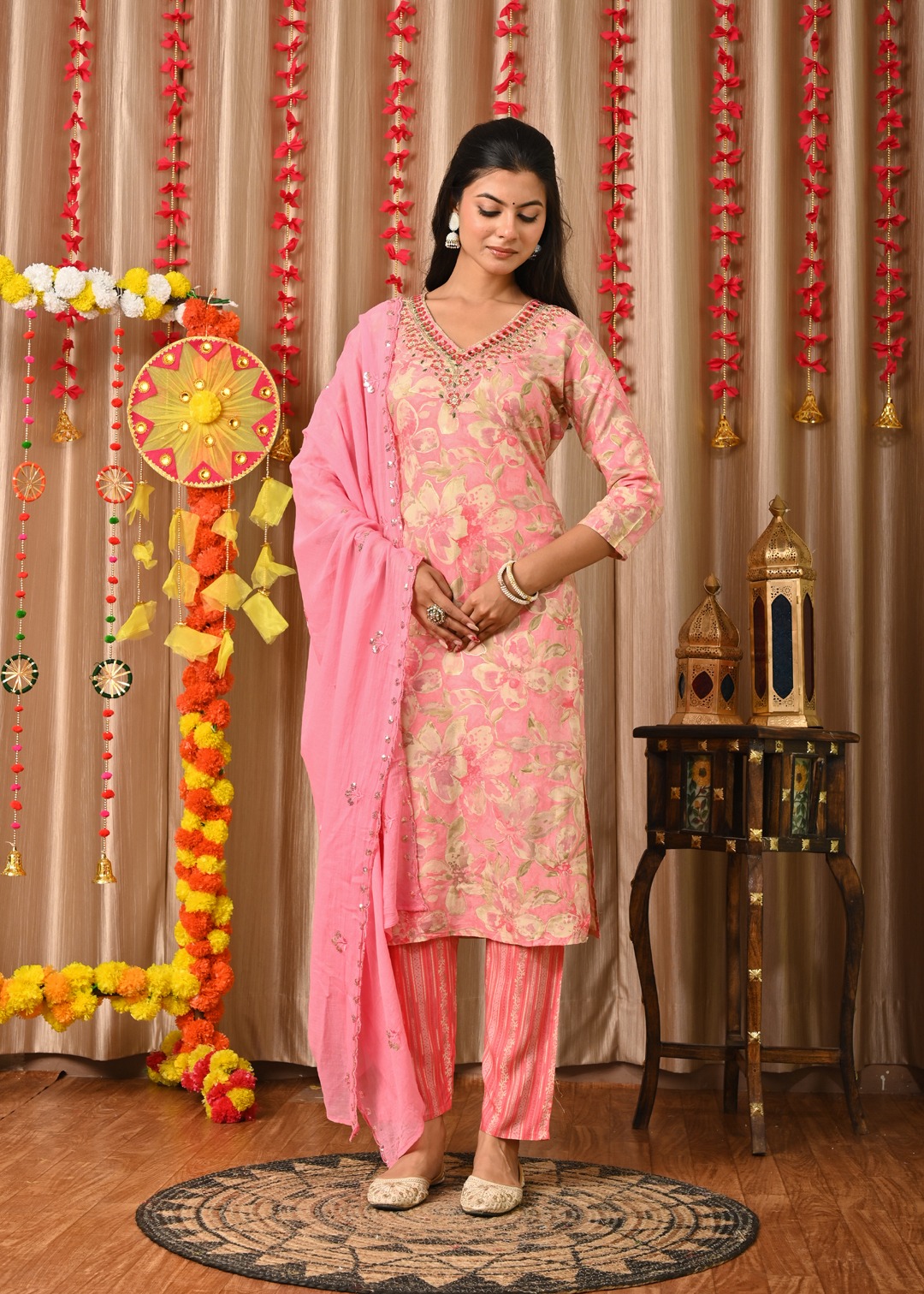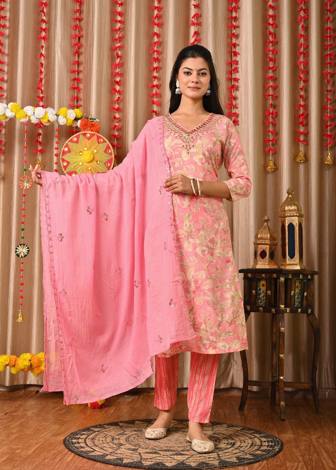 Elevate your ethnic charm with this Light Pink Designer Embroidered Readymade Straight Salwar Kameez Set for Women. Crafted from premium fabric, the kurti features intricate embroidery that adds elegance and sophistication. Paired with matching pants and a dupatta, this set ensures a complete festive look. Perfect for weddings, parties, or festive occasions, it offers a blend of comfort and traditional style that enhances your graceful appearance effortlessly.