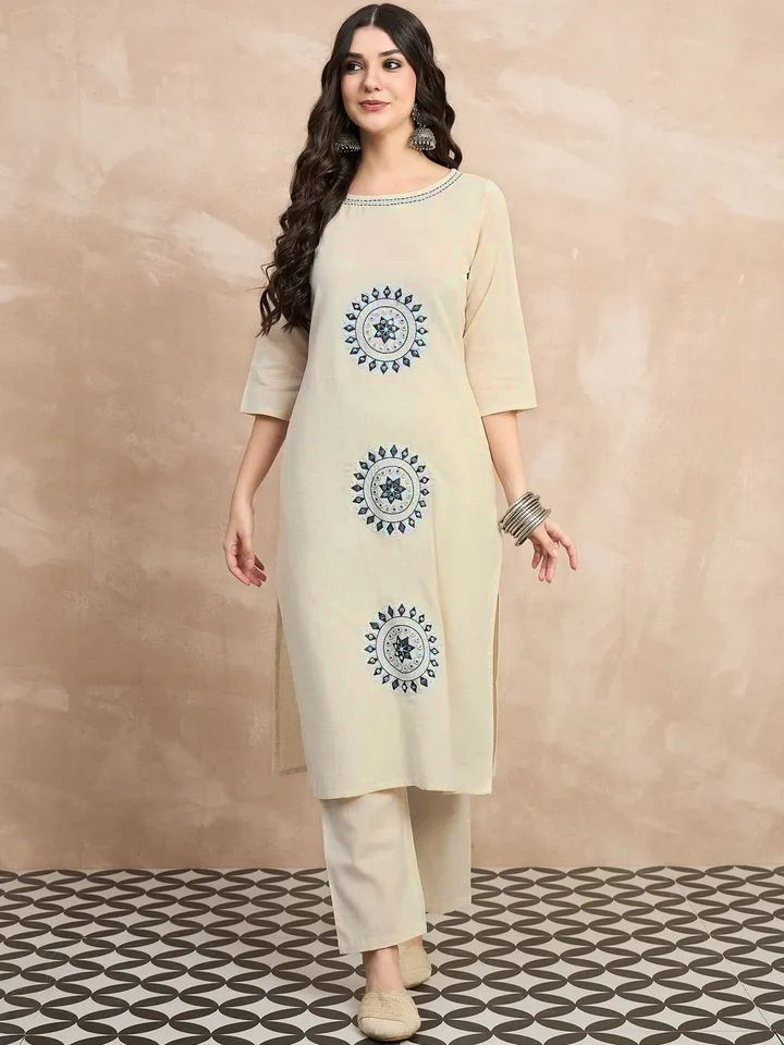 Elevate your style with our Motifs Embroidered Salwar Kameez Kurti Pant Set, an elegant blend of traditional artistry and modern comfort. Crafted from high-quality fabric, this set features intricate embroidery it a delicate yet vibrant look. The kurti offers a flattering silhouette, paired with matching pants for a sophisticated look. Perfect for festive occasions, casual outings, or celebrations, this kurta set embodies elegance and timeless Indian craftsmanship, making it an essential addition to any wardrobe.