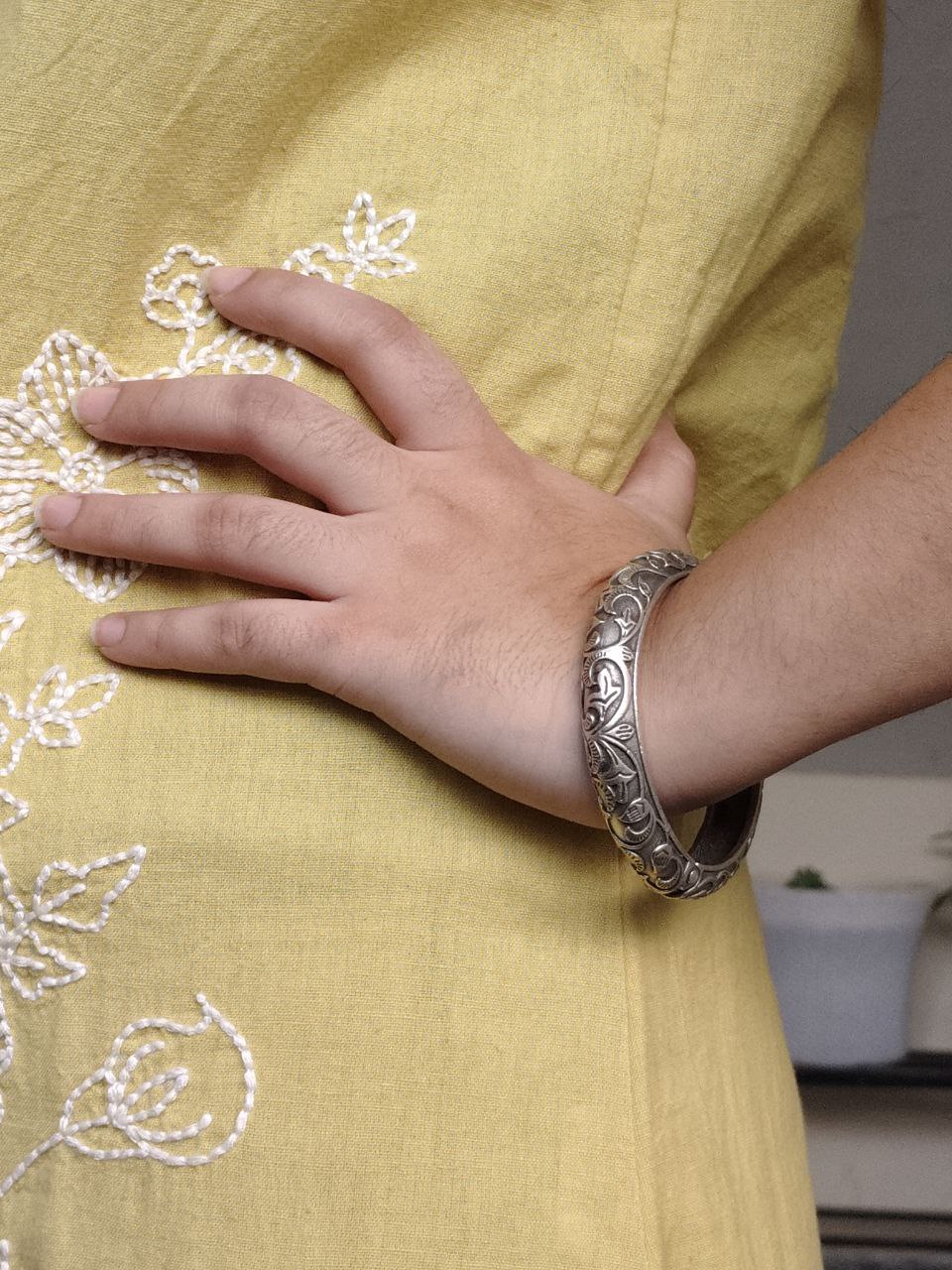 Rustic Silver Oxidised Adjustable Bracelet Kada Tribal Designer Bangle for Women
