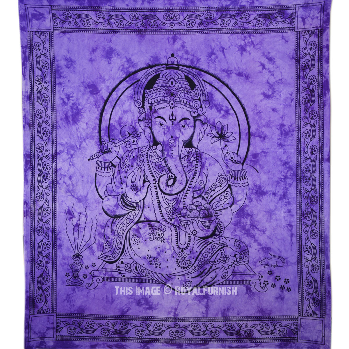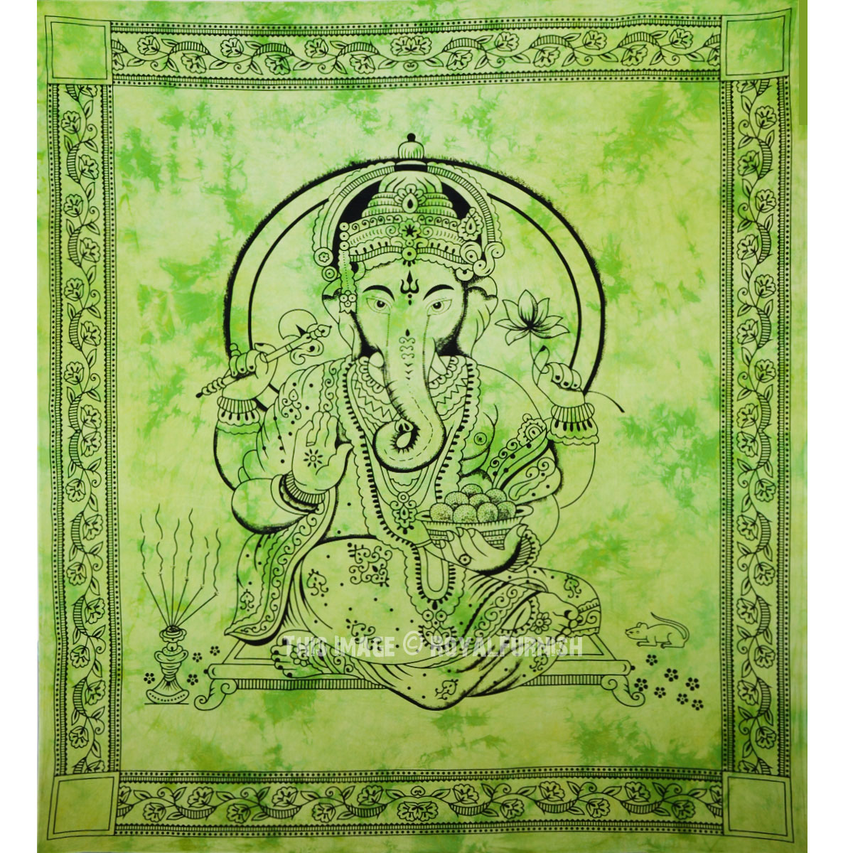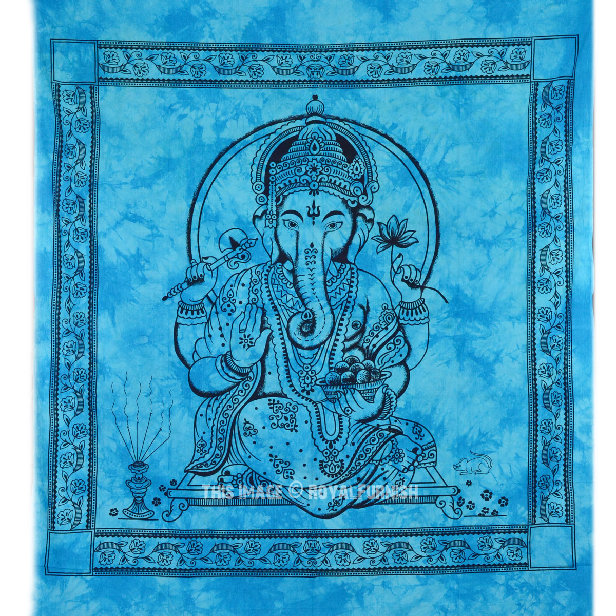 Tapestries are great idea to instant makeover to any room and remove dull ambiance and give revive look to the home interior. We've reached with distinctive, very reasonably priced assortment of attractive Indian Hindu lord Ganesha printed cotton tie dye tapestry wall hanging which fits with any kind of budget, each beautifully constructed from 100% fine cotton in India. The tapestry is finished with bordered edges. It is cool tie dye print India Hindu lord Ganesh print tapestry which adorns any room be it dorm or any room.