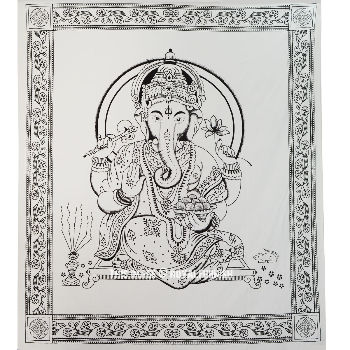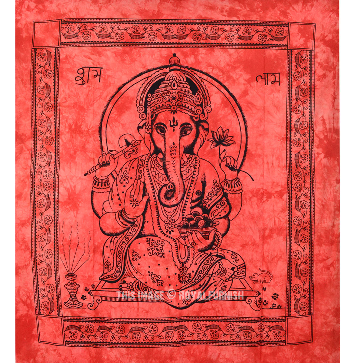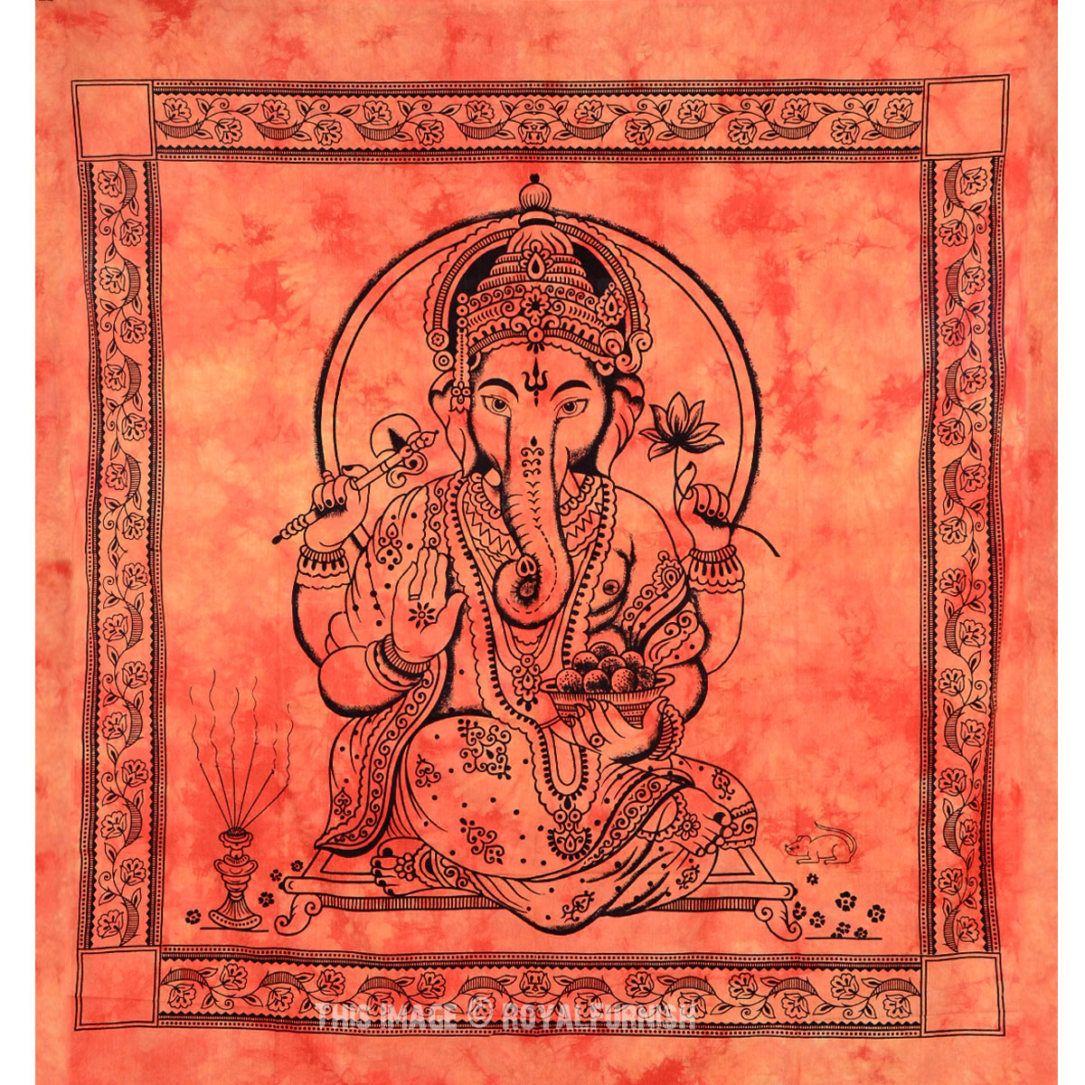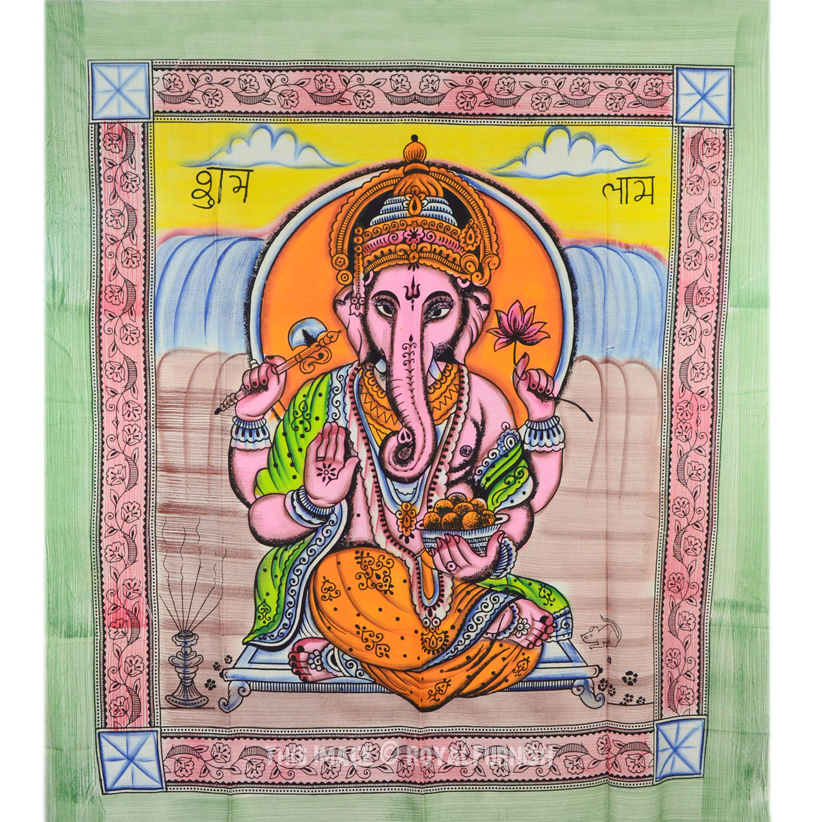 Tapestries are great idea to instant makeover to any room and remove dull ambiance and give revive look to the home interior. We've reached with distinctive, very reasonably priced assortment of attractive Indian Hindu lord Ganesha printed cotton tie dye tapestry wall hanging which fits with any kind of budget, each beautifully constructed from 100% fine cotton in India. The tapestry is finished with bordered edges. It is cool tie dye print India Hindu lord Ganesh print tapestry which adorns any room be it dorm or any room.