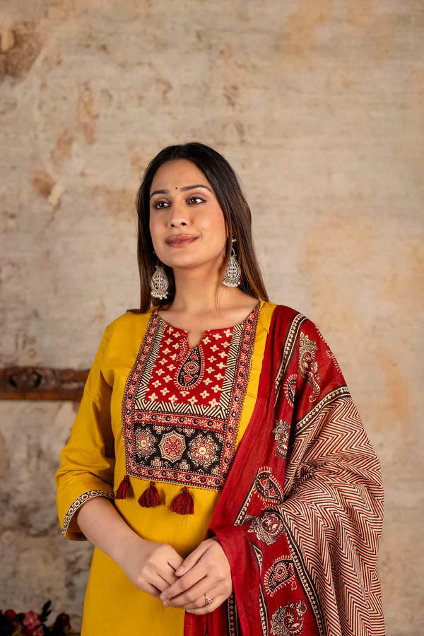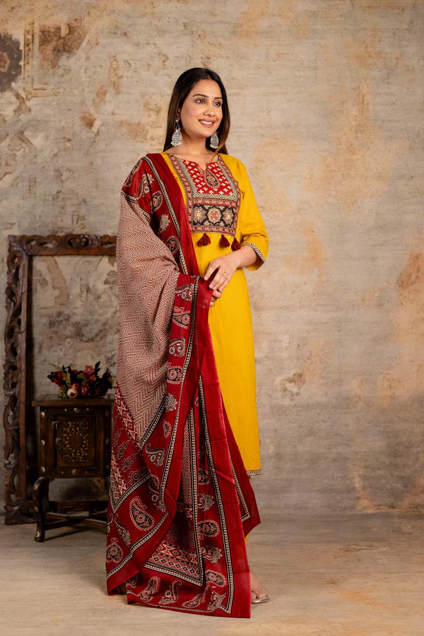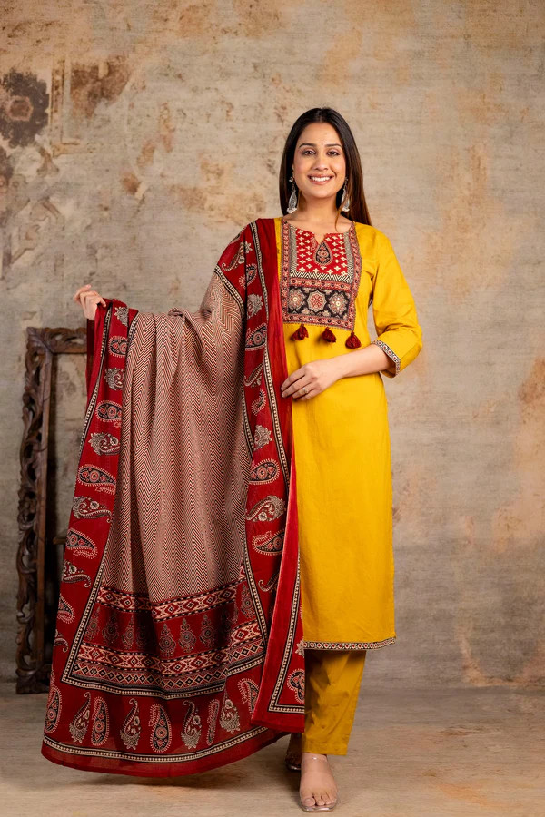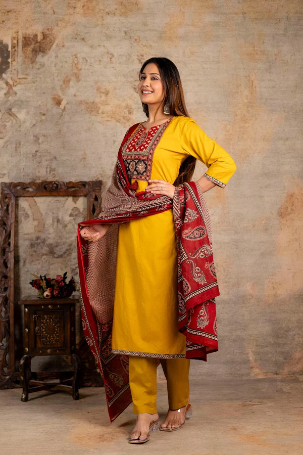 Elevate your ethnic charm with this Designer Readymade Straight Salwar Kameez Set for Women. Crafted from premium cotton fabric, the kurti features intricate print that adds elegance and sophistication. Paired with matching pants and a dupatta, this set ensures a complete festive look. Perfect for weddings, parties, or festive occasions, it offers a blend of comfort and traditional style that enhances your graceful appearance effortlessly.