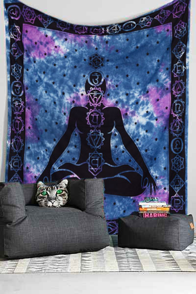 Create meditation/yoga space into your home to make special your meditation times that charge you for entire day. A meditation space reminds us of our intention to practice stillness.  Put up meditation chakra tapestry into your meditation room space where you do yoga and meditation to bring peace into the room. Chakra tapestry features all seven main energy centers of body which charges your sense while making meditation. Constructed from 100% cotton, this tapestry is high in quality, durable and skin friendly. The tapestry is finished with bordered edges.