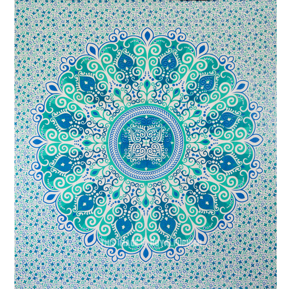 Sea Green Blue Kamala Mandala Wall Tapestry Large Multi Bedding Bohemian Decor