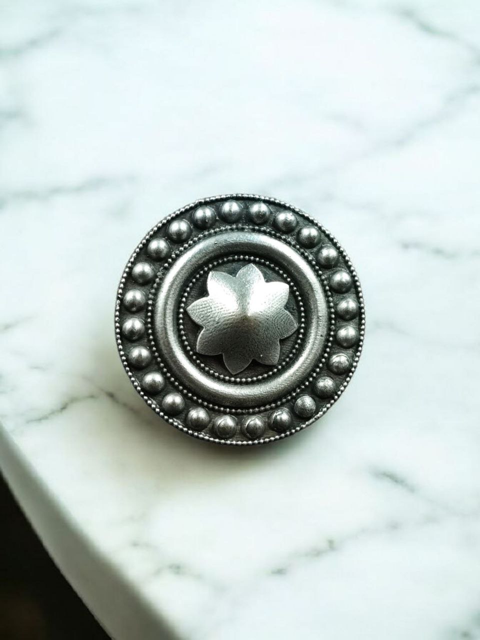 Vintage Rustic Tribal Designer Silver Oxidized Round Finger Ring Gift for Her