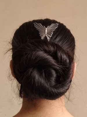 Antique Rustic Designer Butterfly Silver Oxidized Hair Bun Pin Stylish Hair Juda Pin