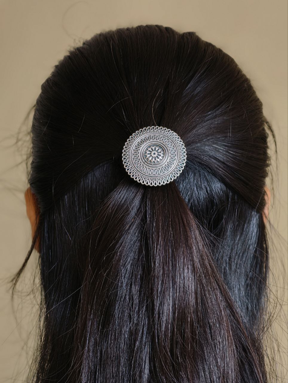 Ethnic Silver Oxidized Hair Pin Stylish Designer Hair Accessories Jewellery for Girls