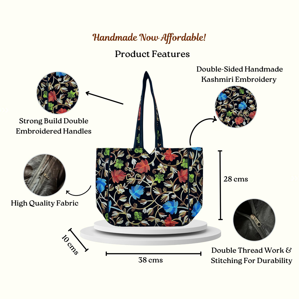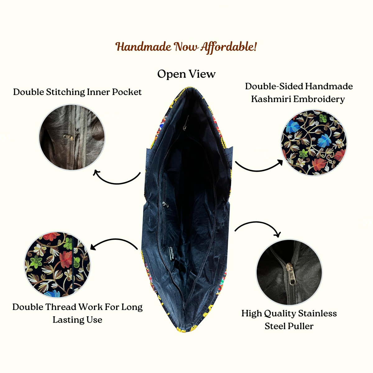 • Authentic Craftsmanship: Features genuine Kashmiri handmade flower embroidery, symbolizing rich Indian heritage.