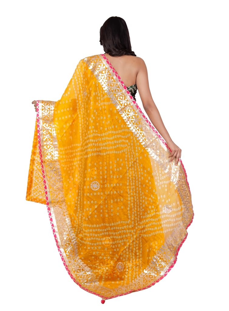 Exquisite traditional kota doria bandhani lehenga choli set with dupatta featuring intricate ethnic Jaipuri self-design gota patti lace border work and beautiful bandhej patterns in elegant colours. It's perfect for weddings, festivals, traditional ceremonies, and special cultural celebrations where ethnic attire is preferred.