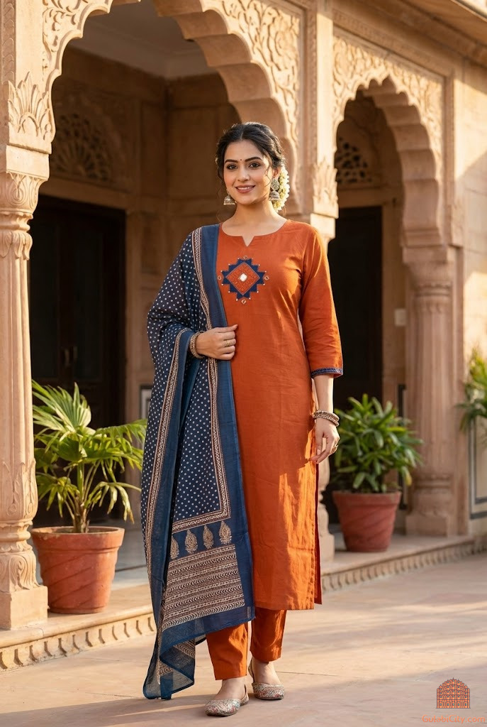 Elevate your ethnic charm with this Orange Designer Readymade Straight Salwar Kameez Set for Women. Crafted from premium cotton fabric, the kurti features intricate work that adds elegance and sophistication. Paired with matching pants and a kota doriya dupatta, this set ensures a complete festive look. Perfect for weddings, parties, or festive occasions, it offers a blend of comfort and traditional style that enhances your graceful appearance effortlessly.