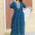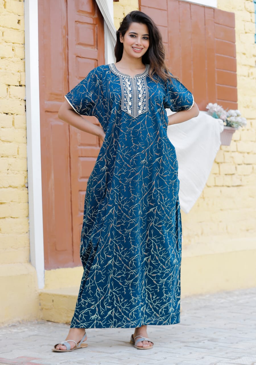 Blue Cotton Nighty Night Gown Indoor Wear Comfortable Printed Night Kurti Maxi