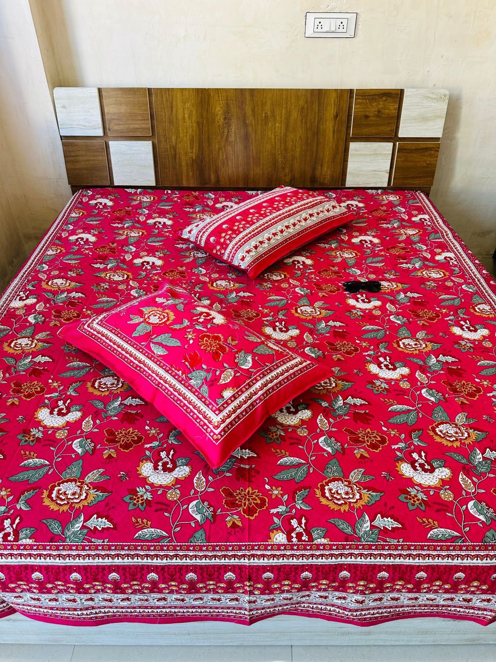 Transform your bedroom with this designer hand block printed Jaipuri bedsheet for a king size bed. Crafted from premium-quality, 100% cotton, this bed sheet ensures breath ability and long-lasting comfort. This bed sheet set offers the perfect combination of luxury, comfort, and practicality, making it an excellent addition to any modern bedroom.