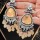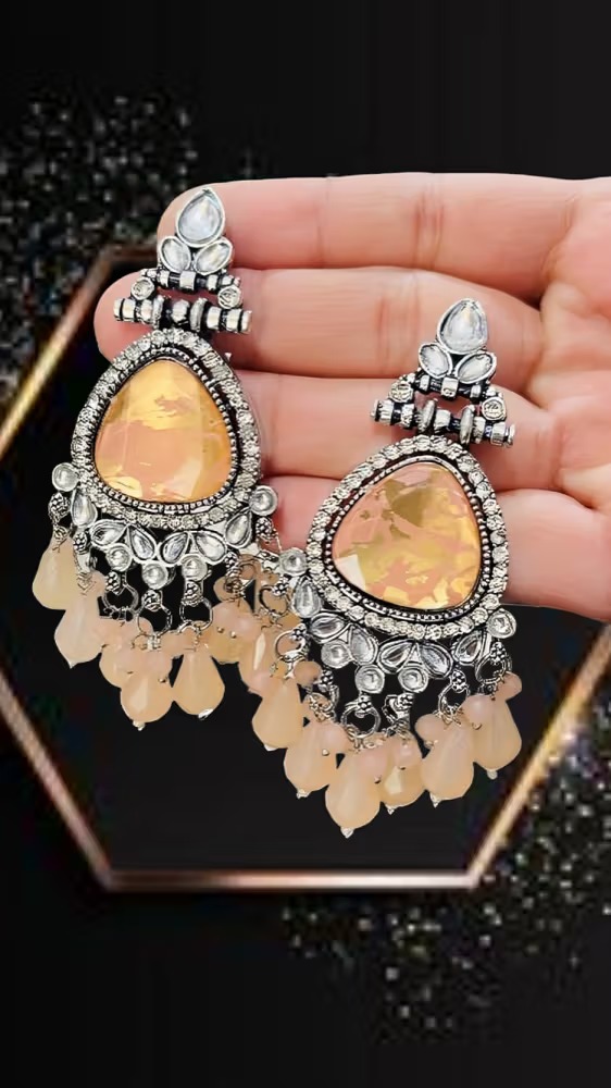 Peach Exquisite Kundan Polki Chandbali Earrings with Pearl & Hydro Dangle Drops for Women