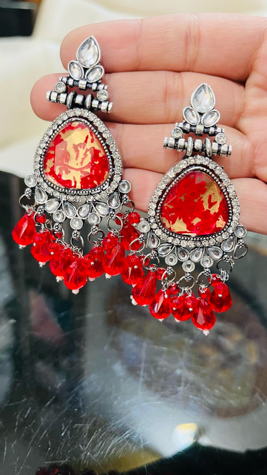 Red Exquisite Kundan Polki Chandbali Earrings with Pearl & Hydro Dangle Drops for Women