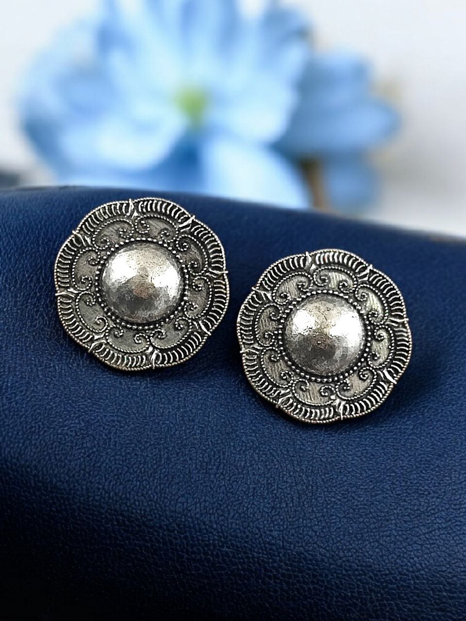 Vintage Bohemian Silver Oxidised Round Stud Earring Affordable Tops Earrings Jewelry