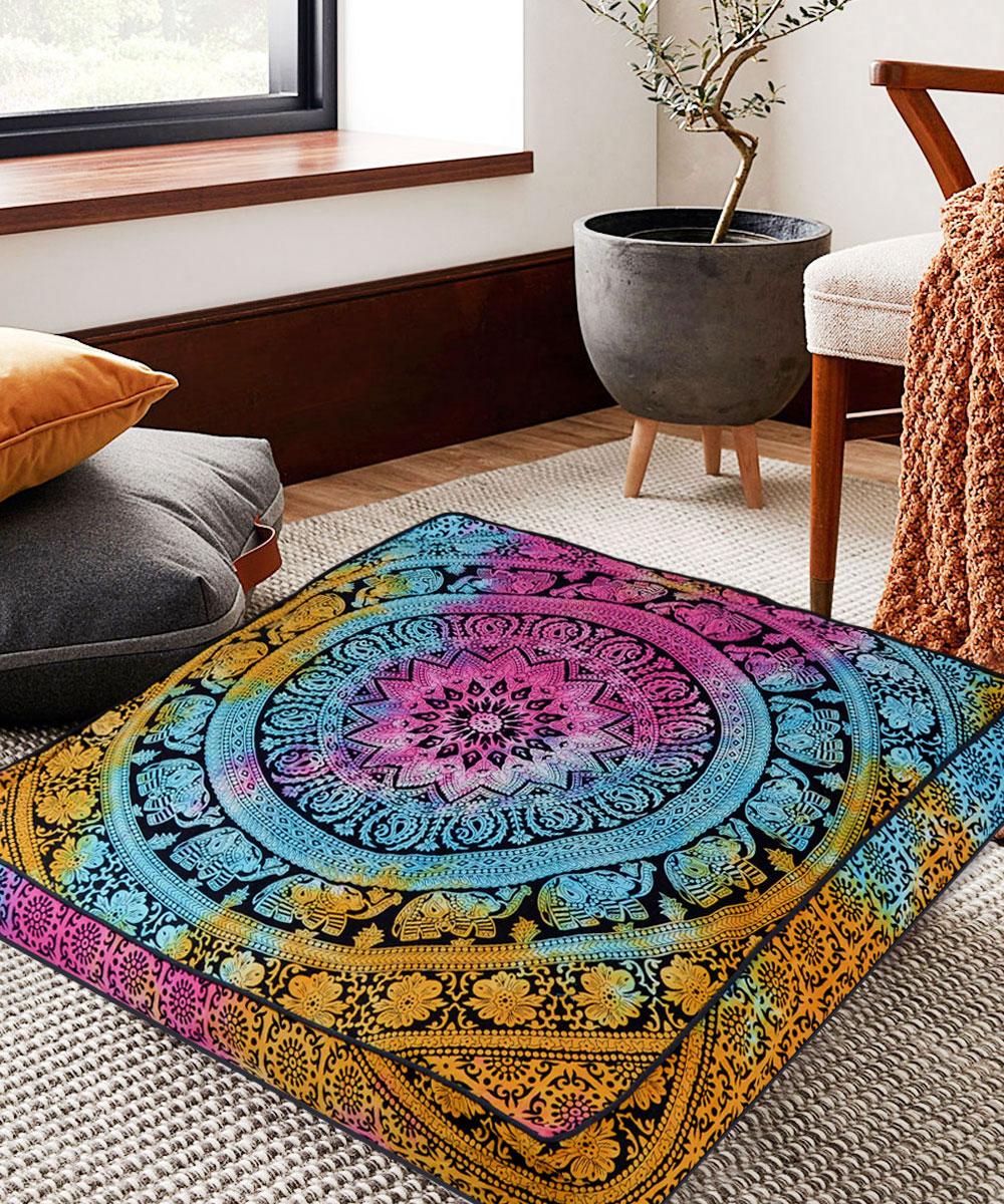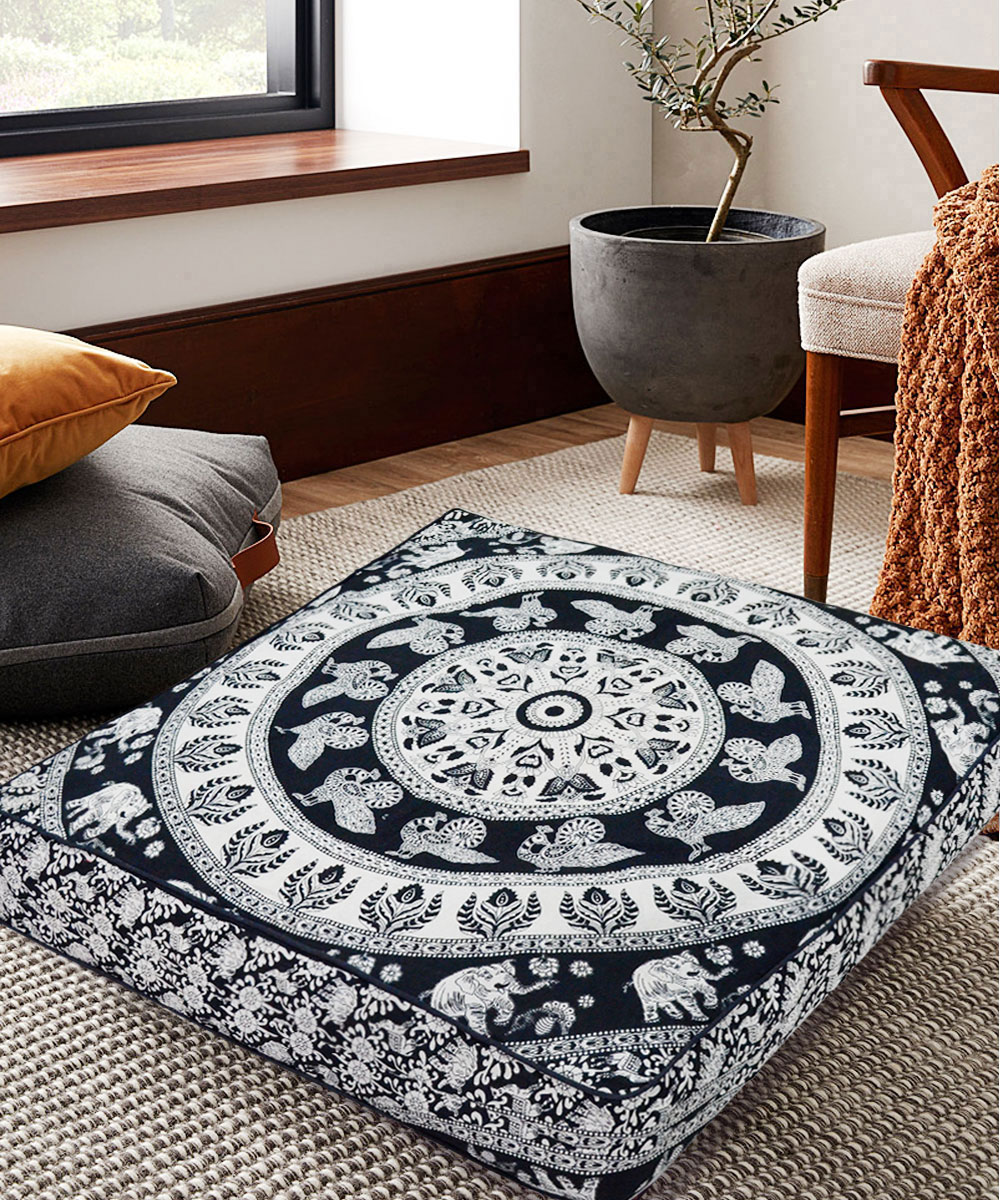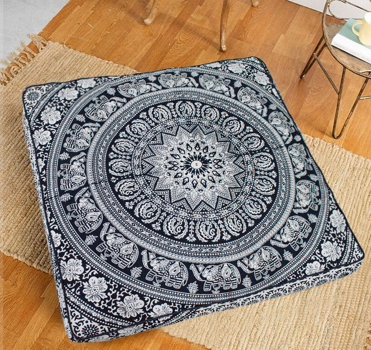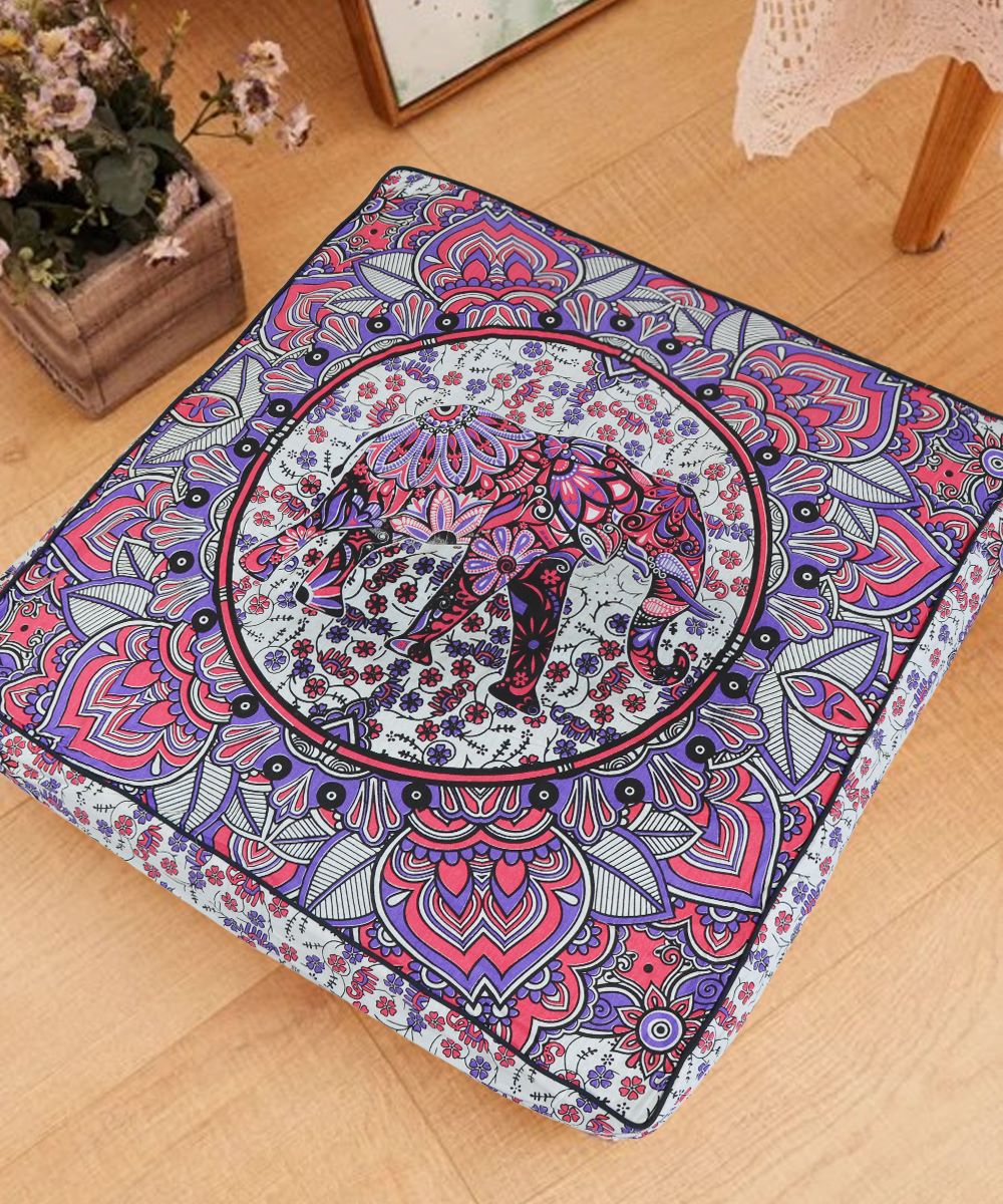 Bohemian Elephant Mandala Floor Pillow Cover Square Cushion Cover Dog Cat Bed - 36 Inch