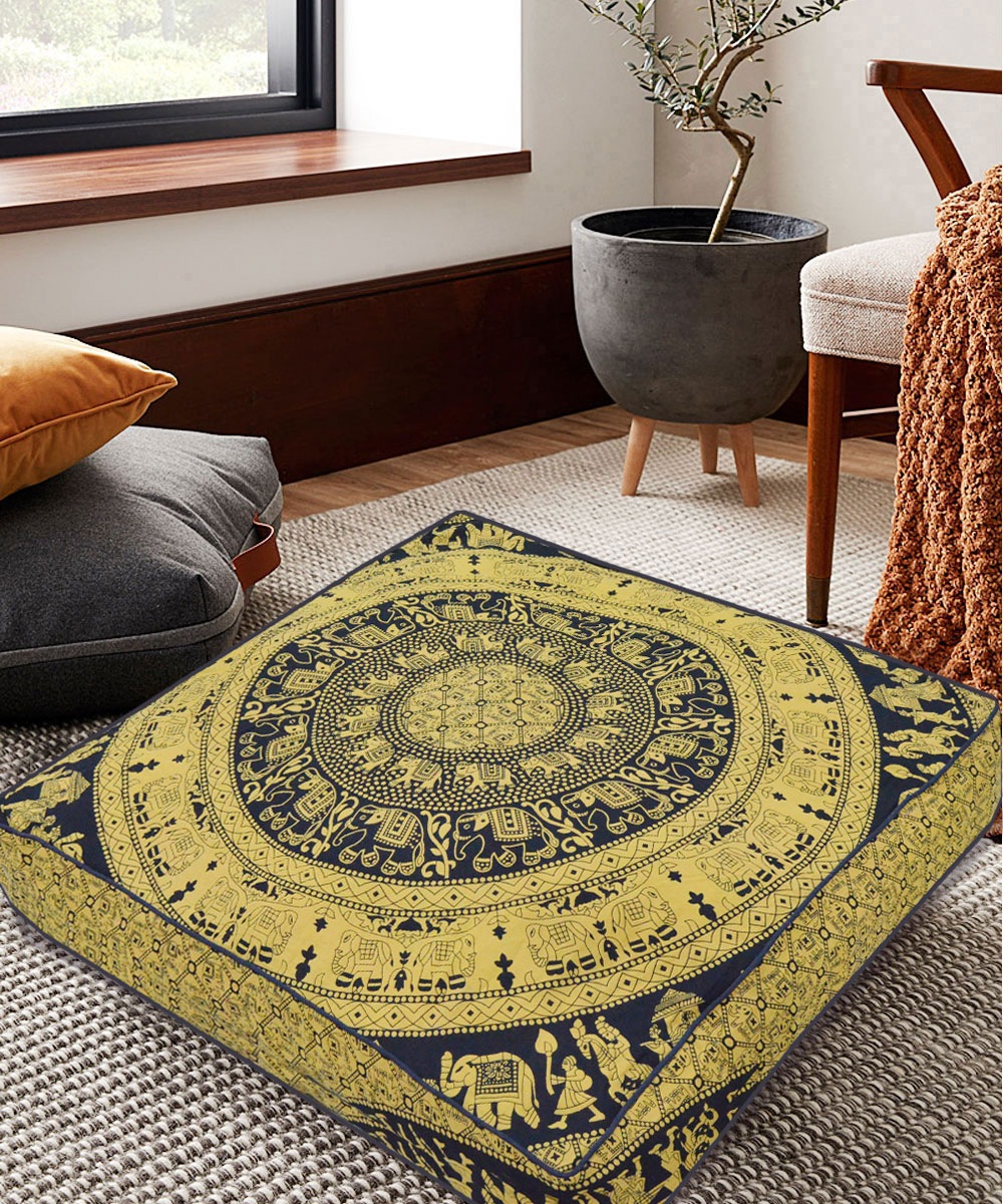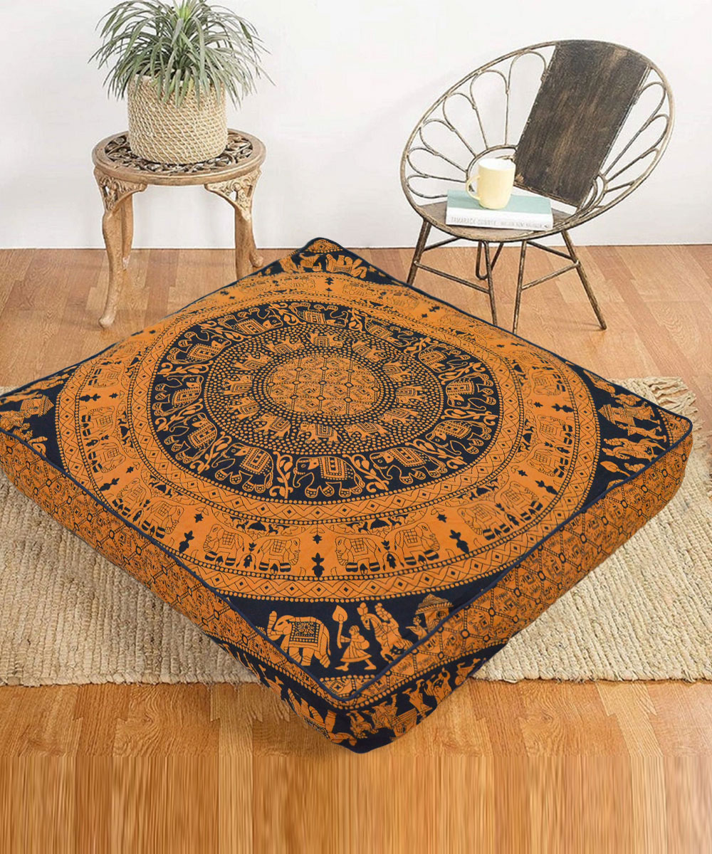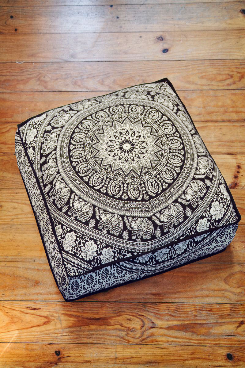 Bohemian Elephant Mandala Floor Pillow Cover Square Cushion Cover Dog Cat Bed - 36 Inch