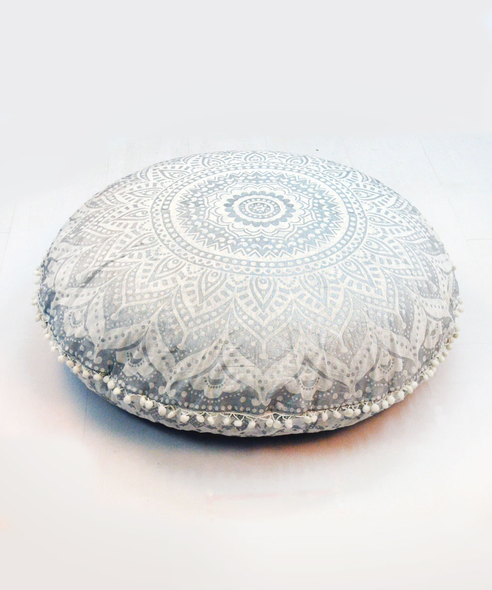 Silver & White Mandala Round Cushion Cover Small Floor Pillow Cover Pet Bedding - 18" Inch