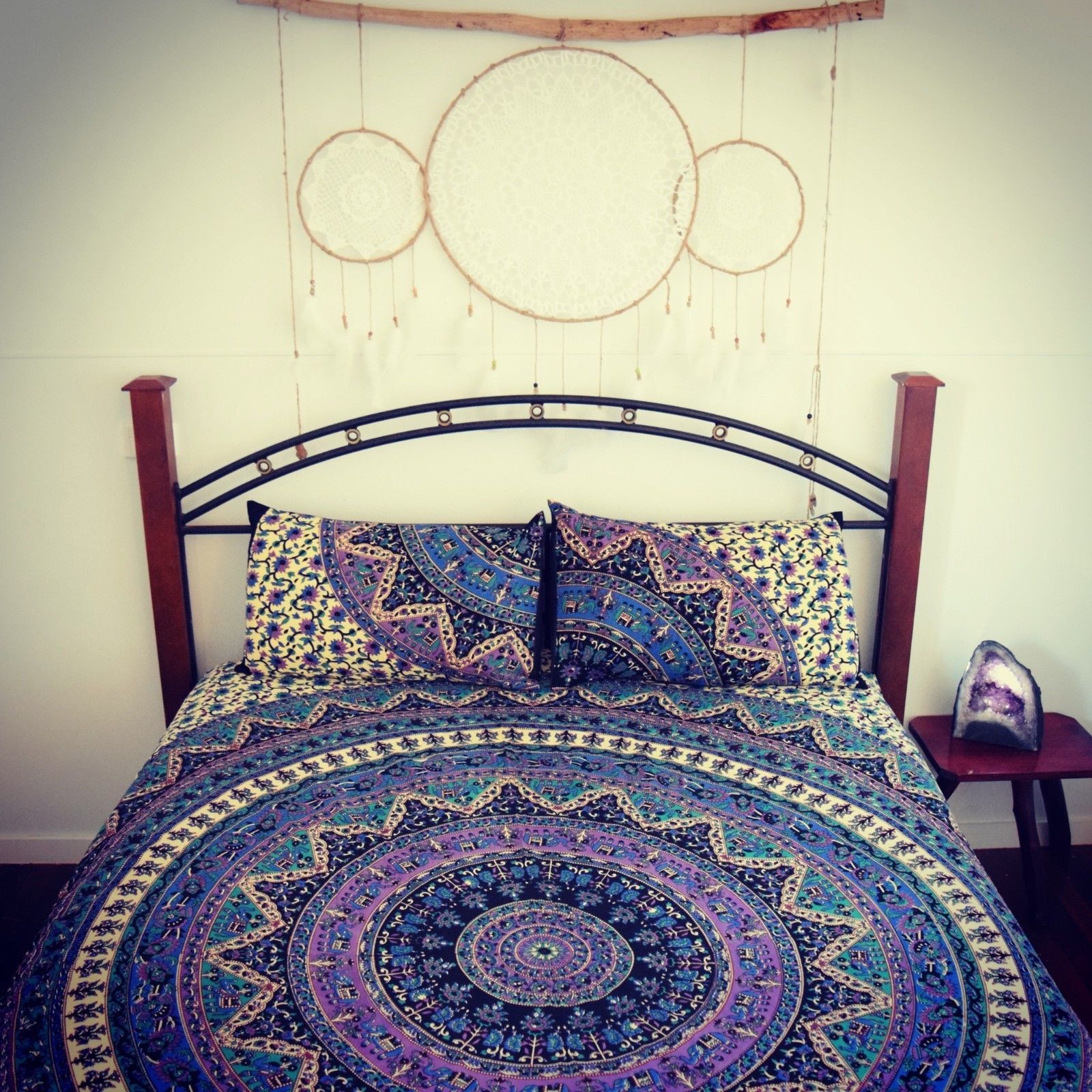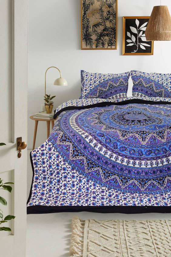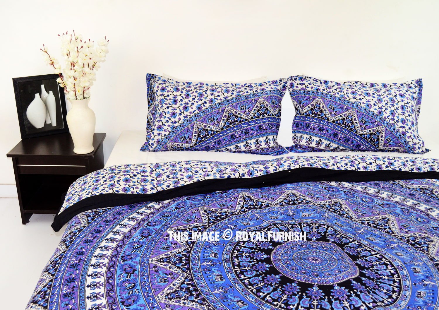 Blue Purple Bohemian Kerala Mandala Colorful Queen Size Duvet Cover with Set of Pillow Covers