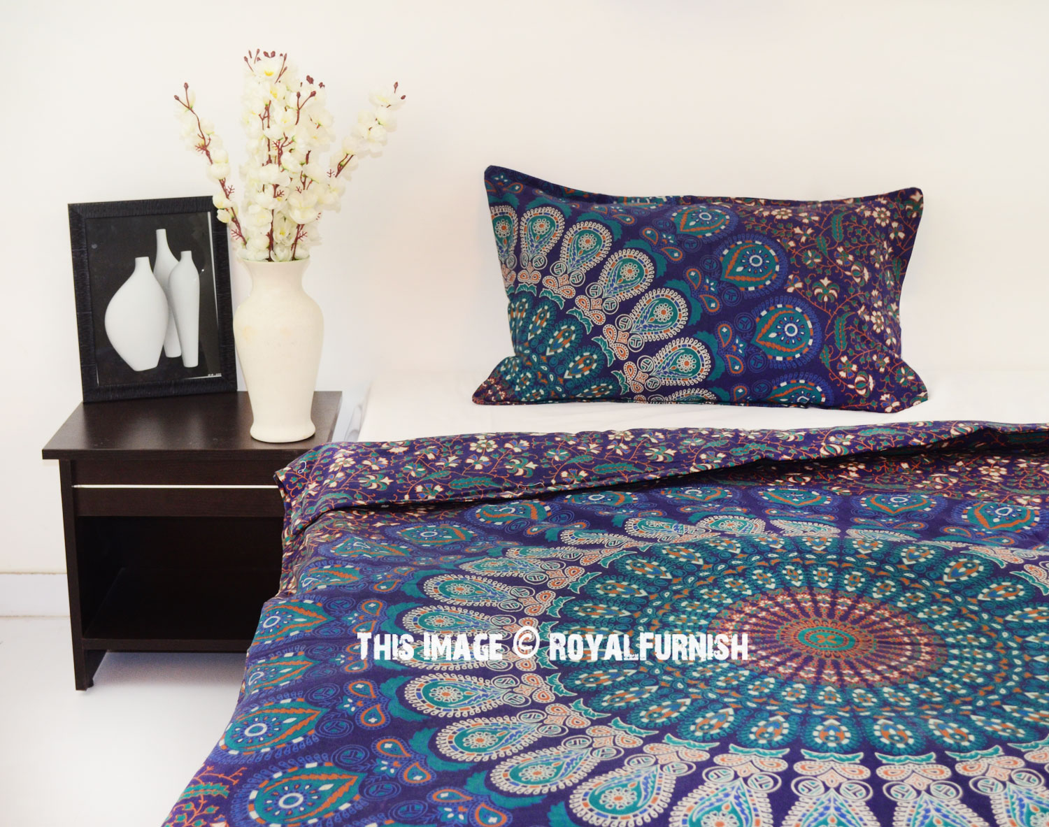 Bohemian Peafowl Mandala Twin Size Indian Duvet Cover Set with One Pillow Sham