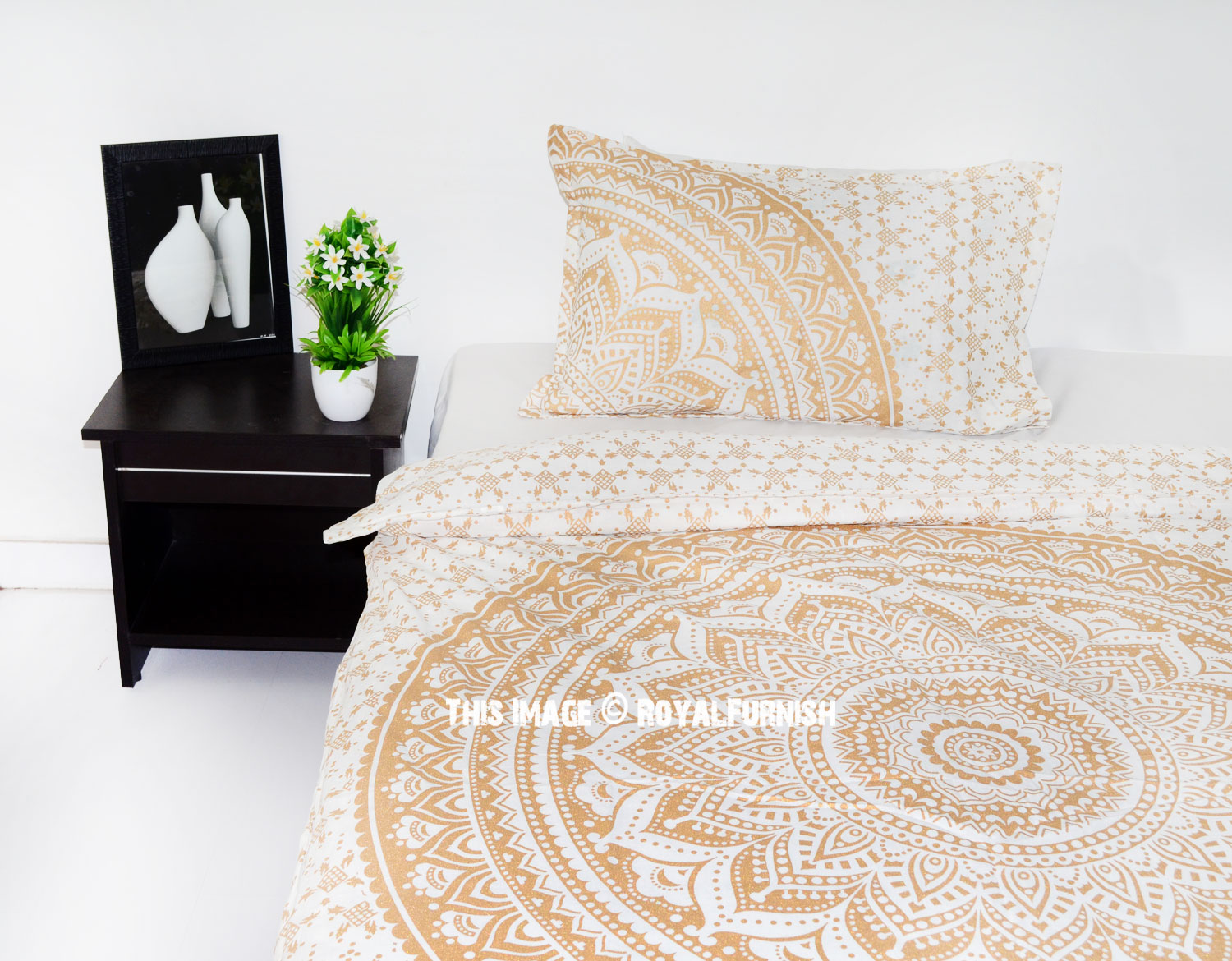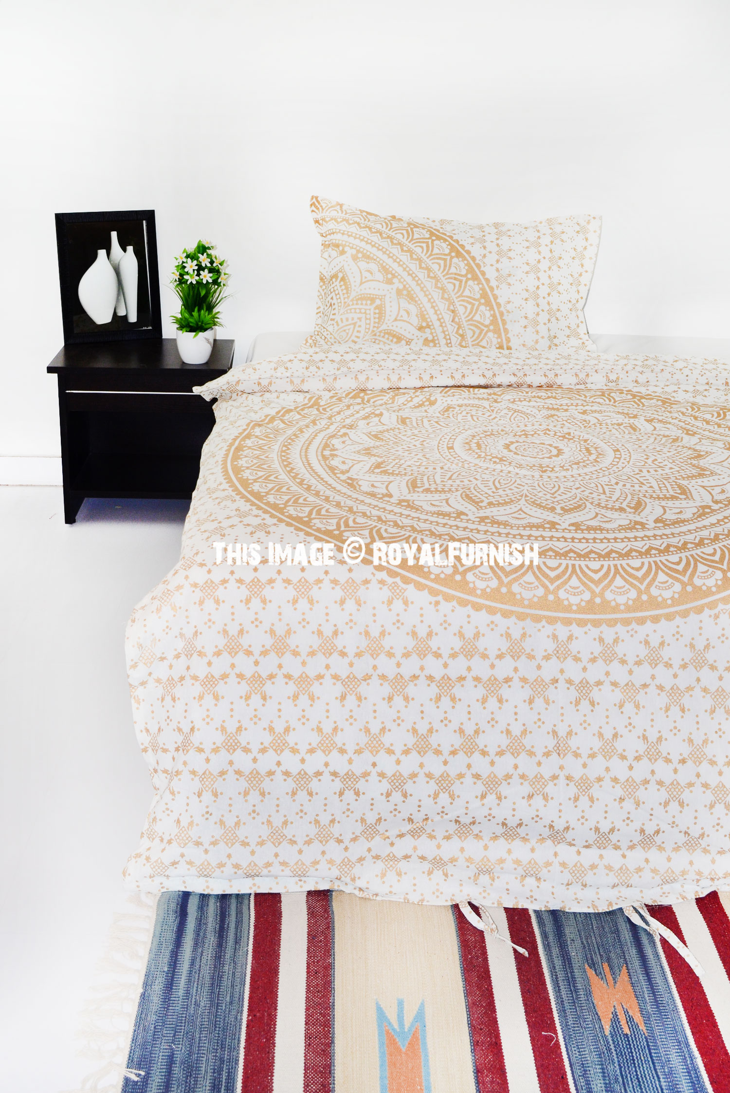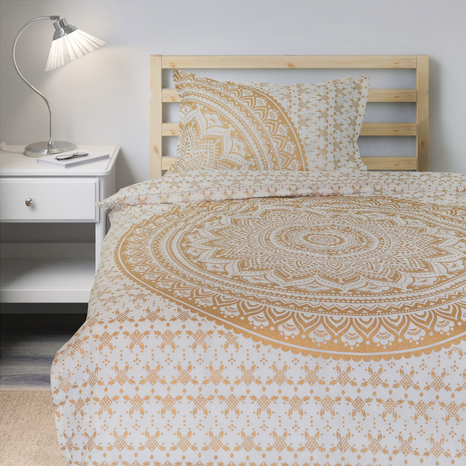 Sparkly Gold Classic Ombre Mandala Bohemian Twin Size Duvet Cover Set with One Pillow Sham