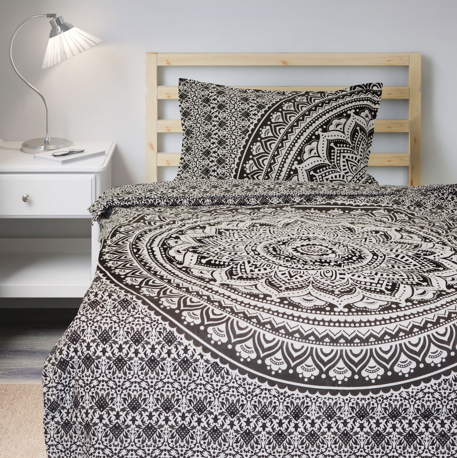 Classic Ombre Mandala Bohemian Twin Size Duvet Cover Set with One Pillow Sham