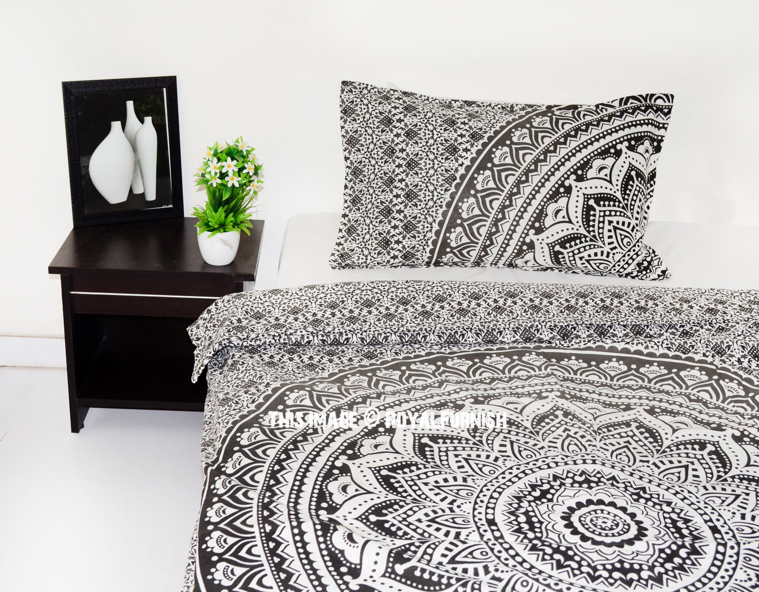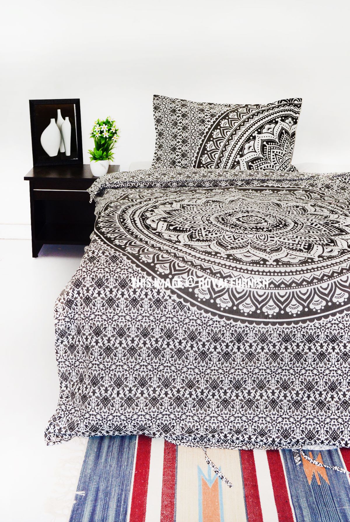 Grey Black Classic Ombre Mandala Bohemian Twin Size Duvet Cover Set with One Pillow Sham
