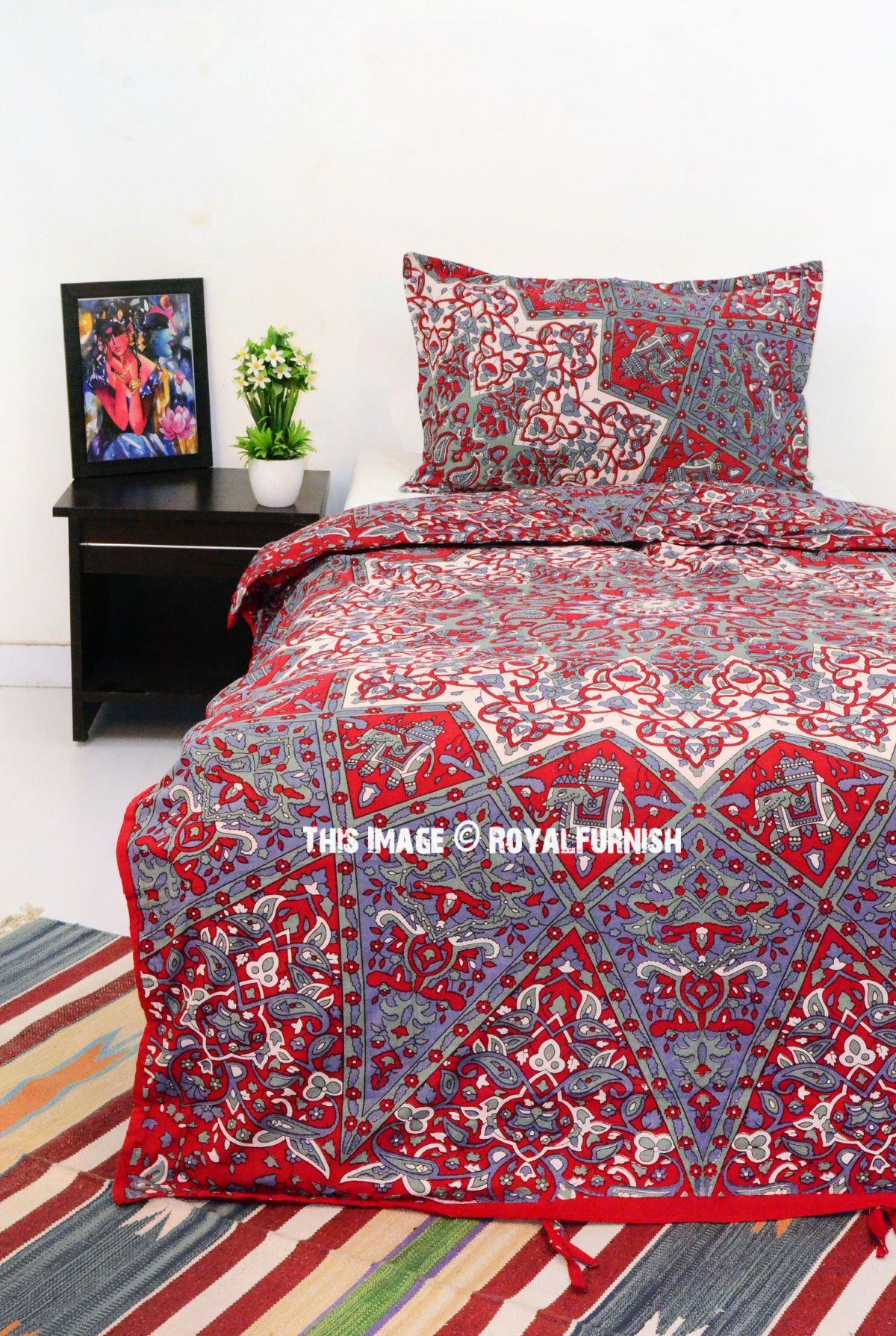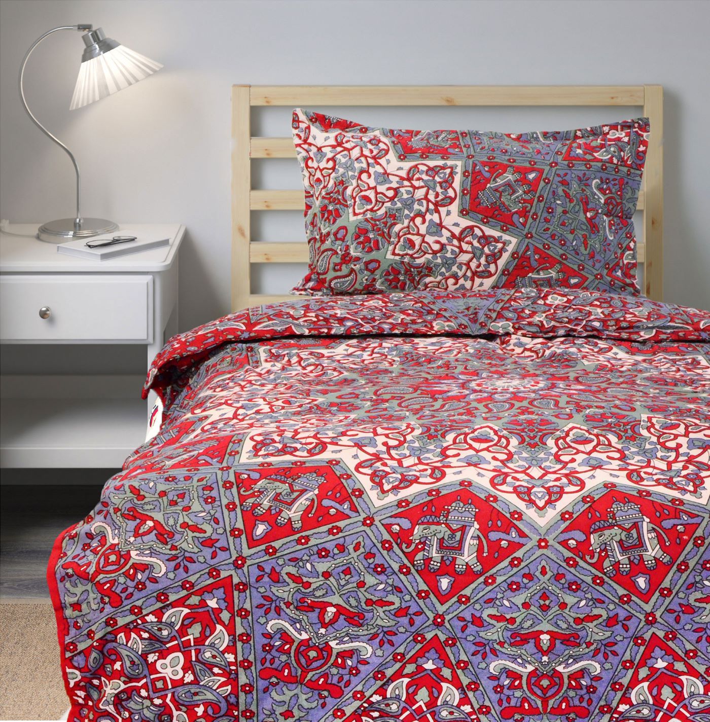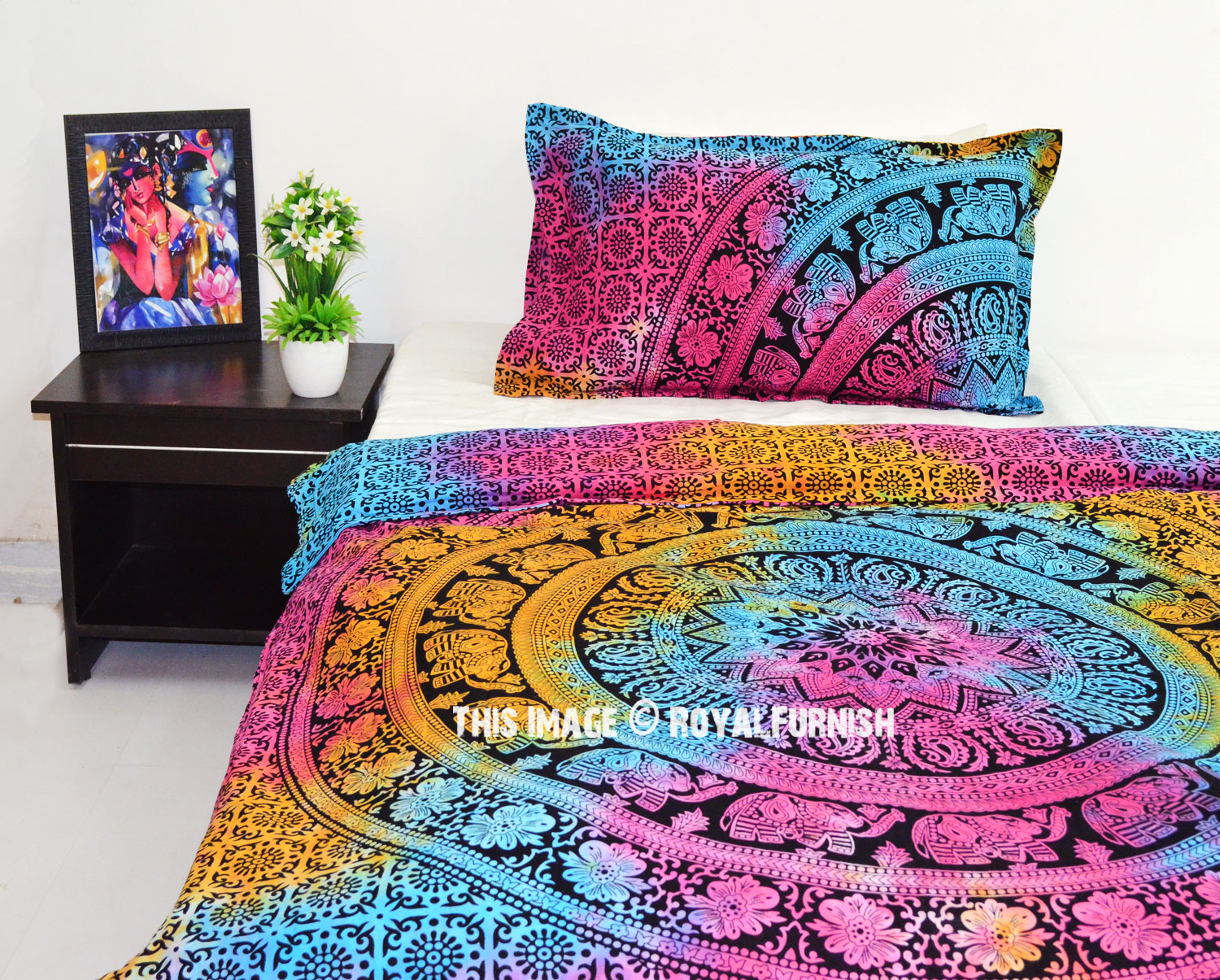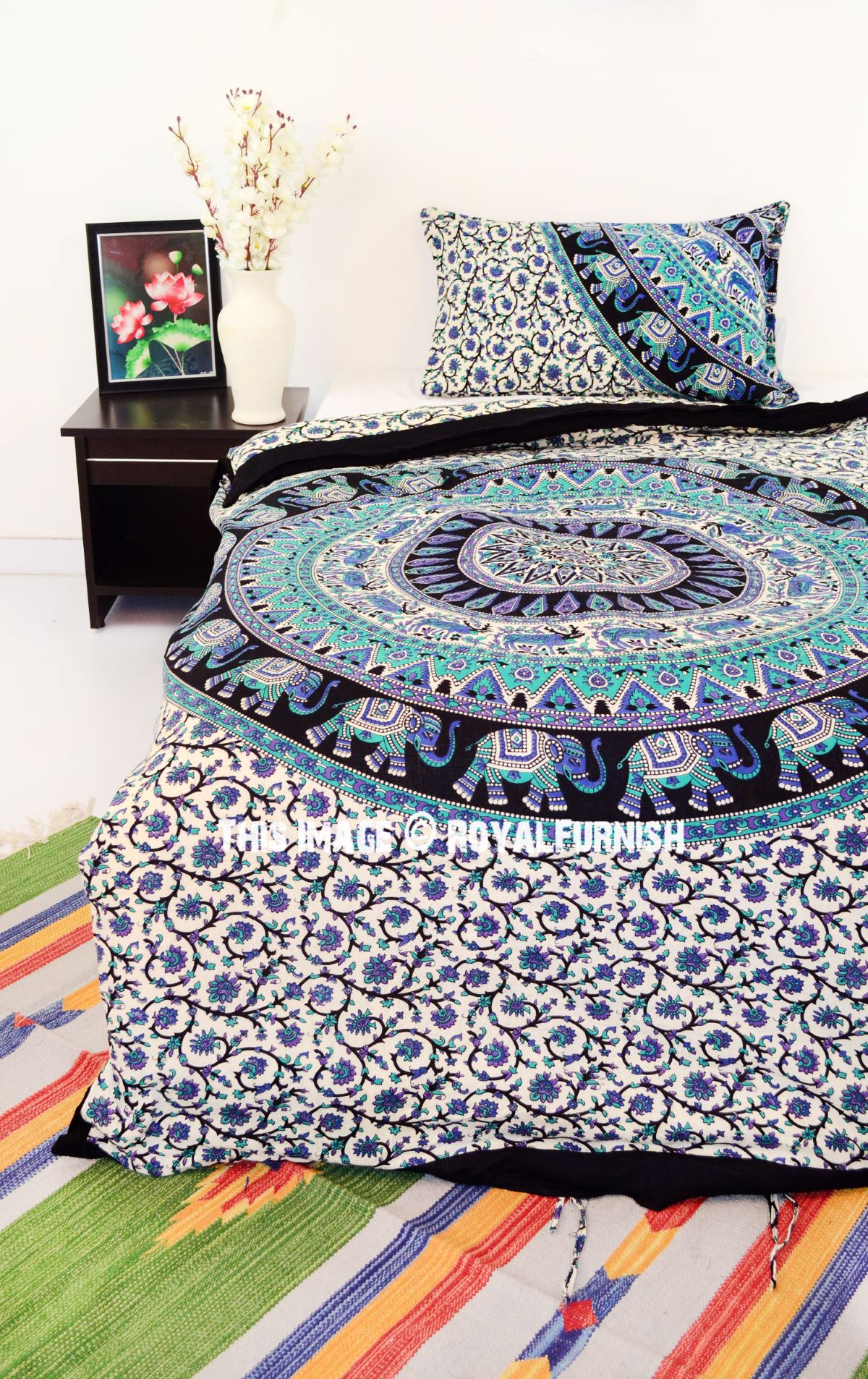Add flare to your bedroom decor with this cotton duvet cover set in a mandala print. Constructed of 100 percent cotton, this set is machine washable for easy care and offers soft, breathable comfort. Duvet cover has tie closure and shams feature envelope closures. You can never go wrong with a solid bedding update to your room. The multi-toned color scheme easily matches with a variety of sheets.