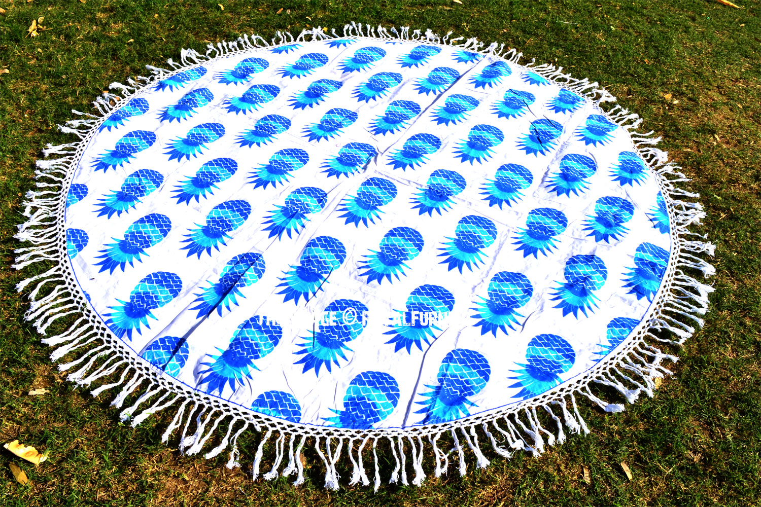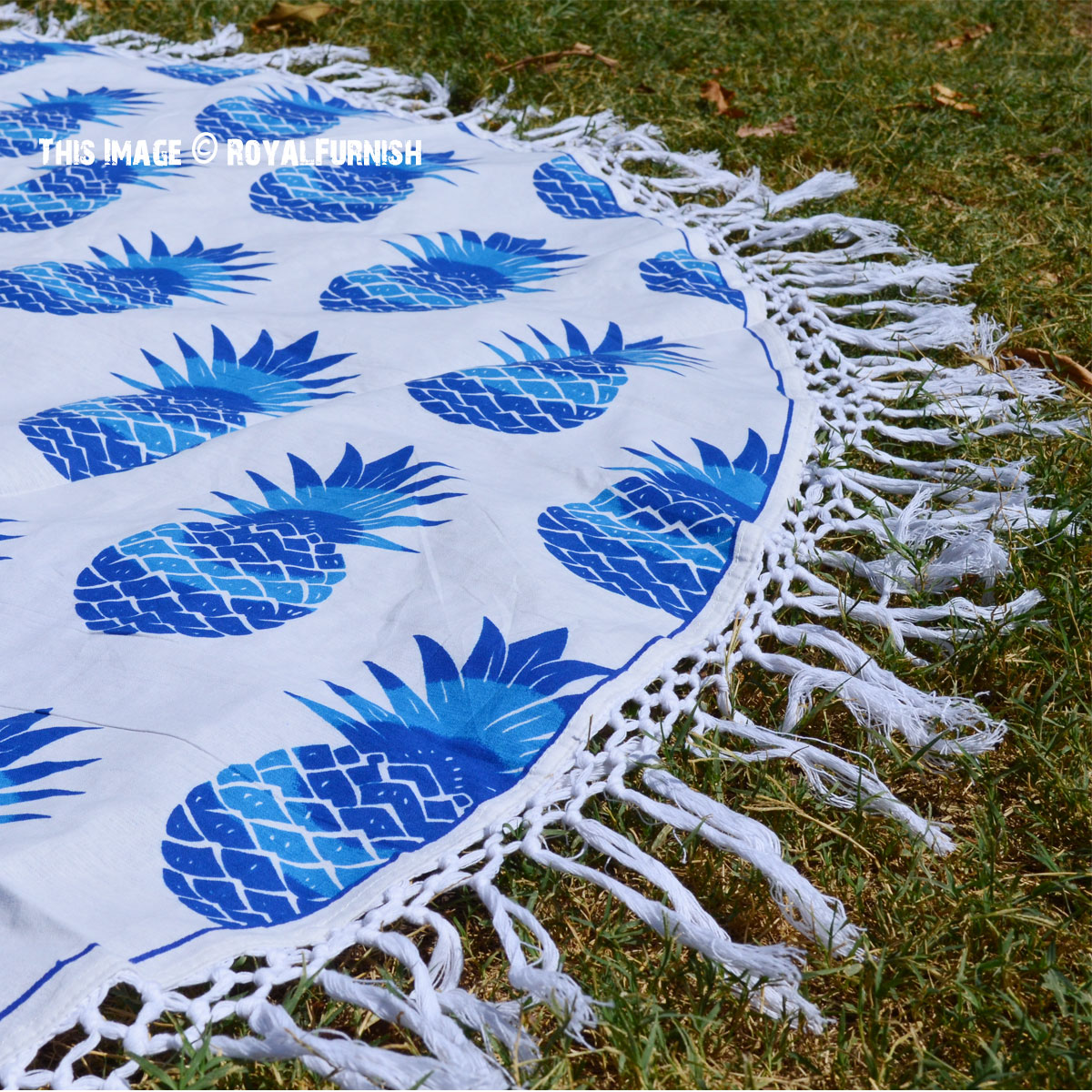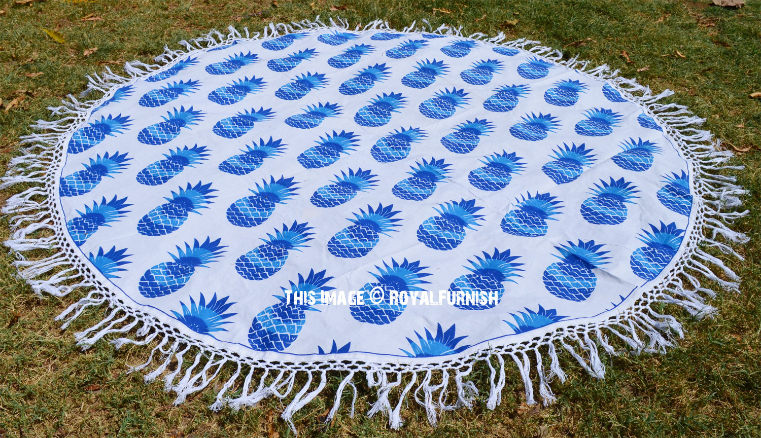 Blue Hippie Pineapple Printed Fringed Roundie Beach Throw, Round Table Cloth
