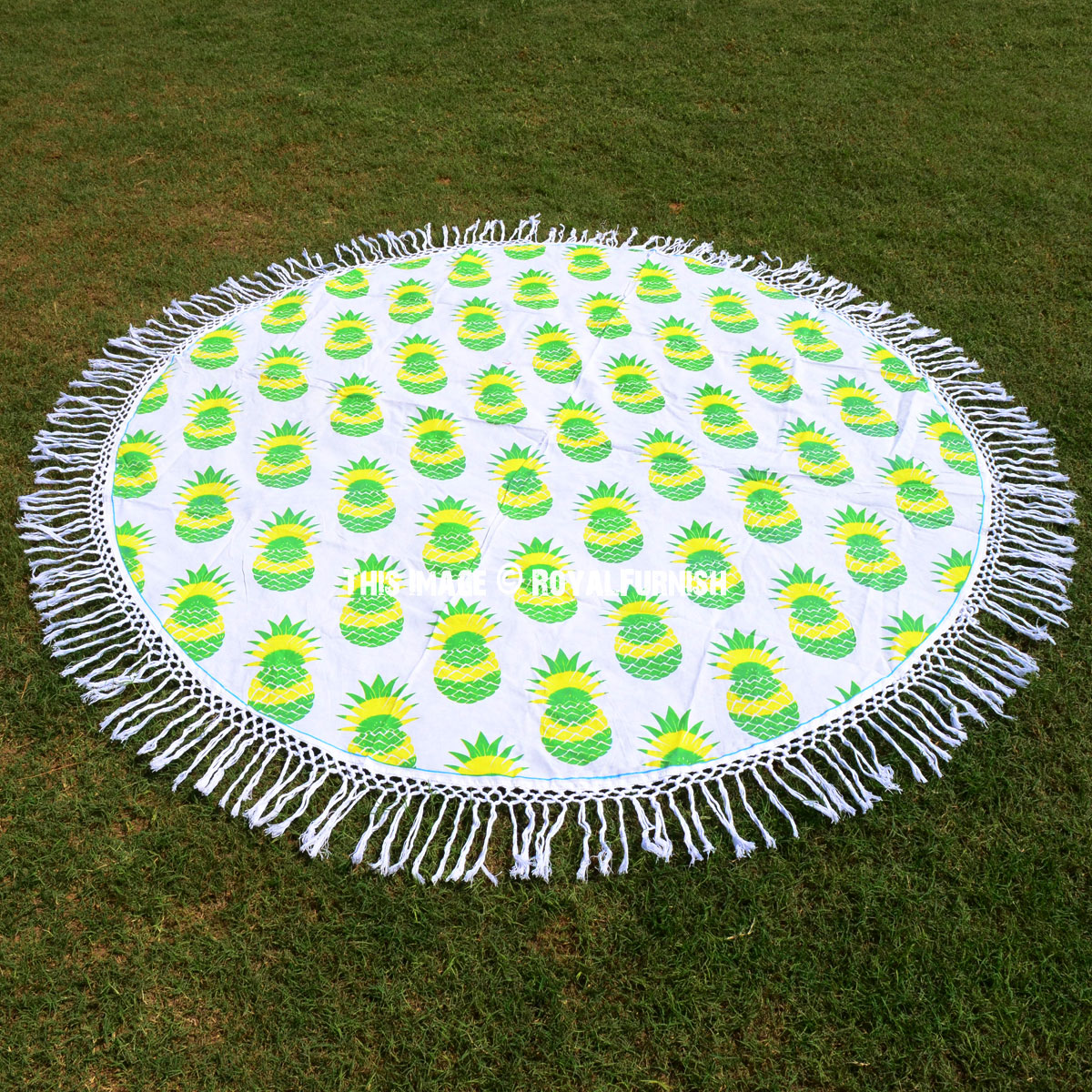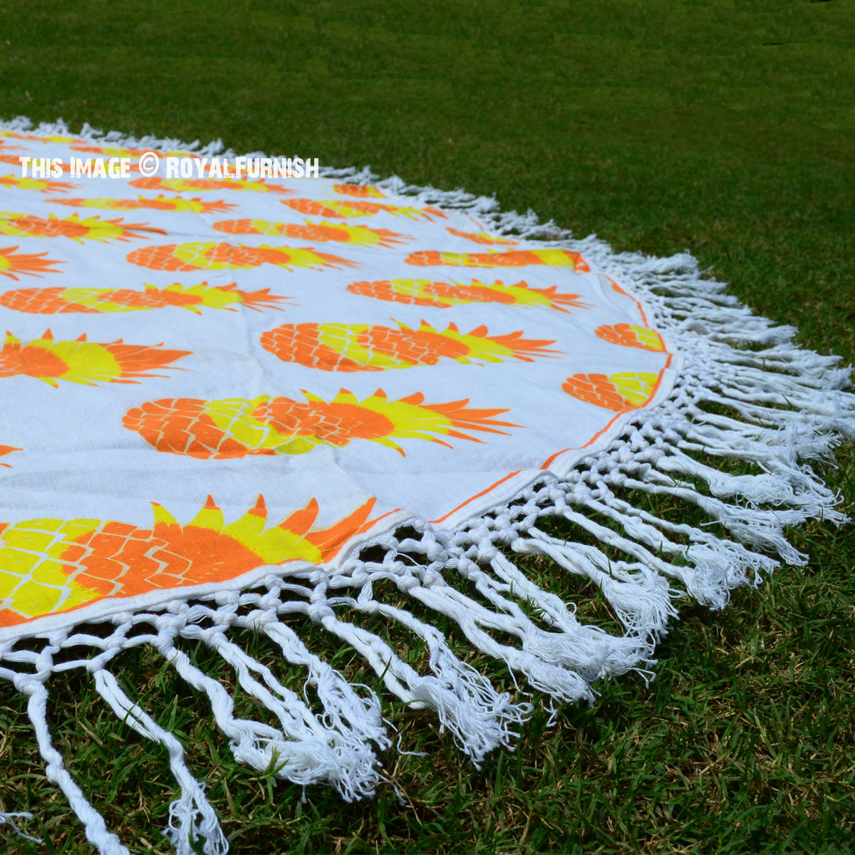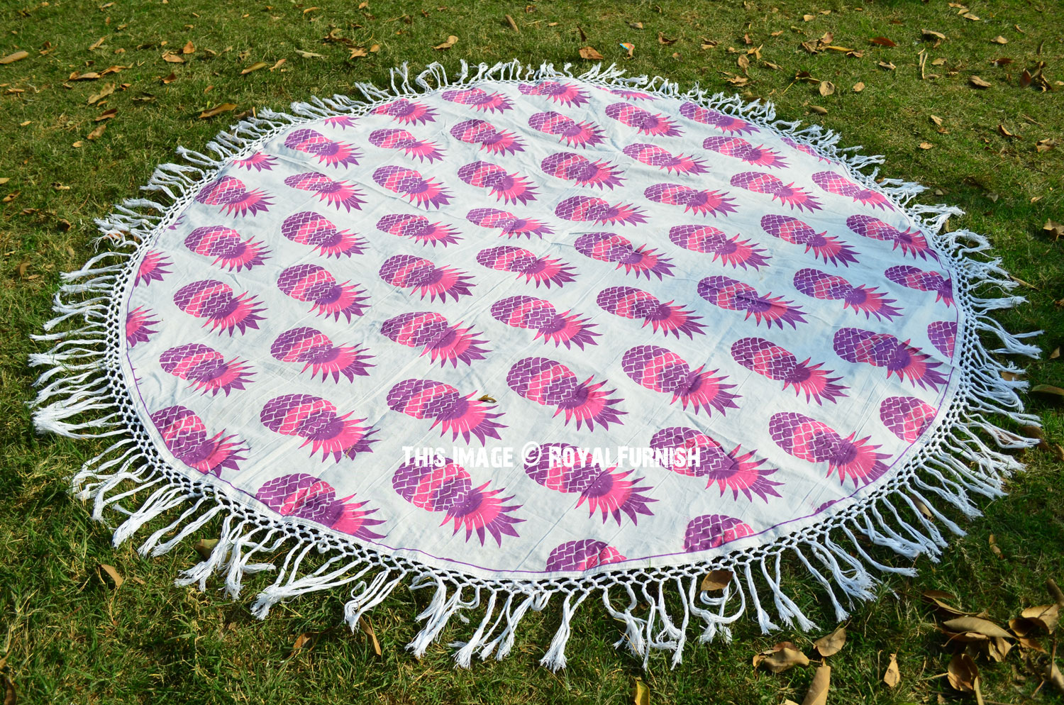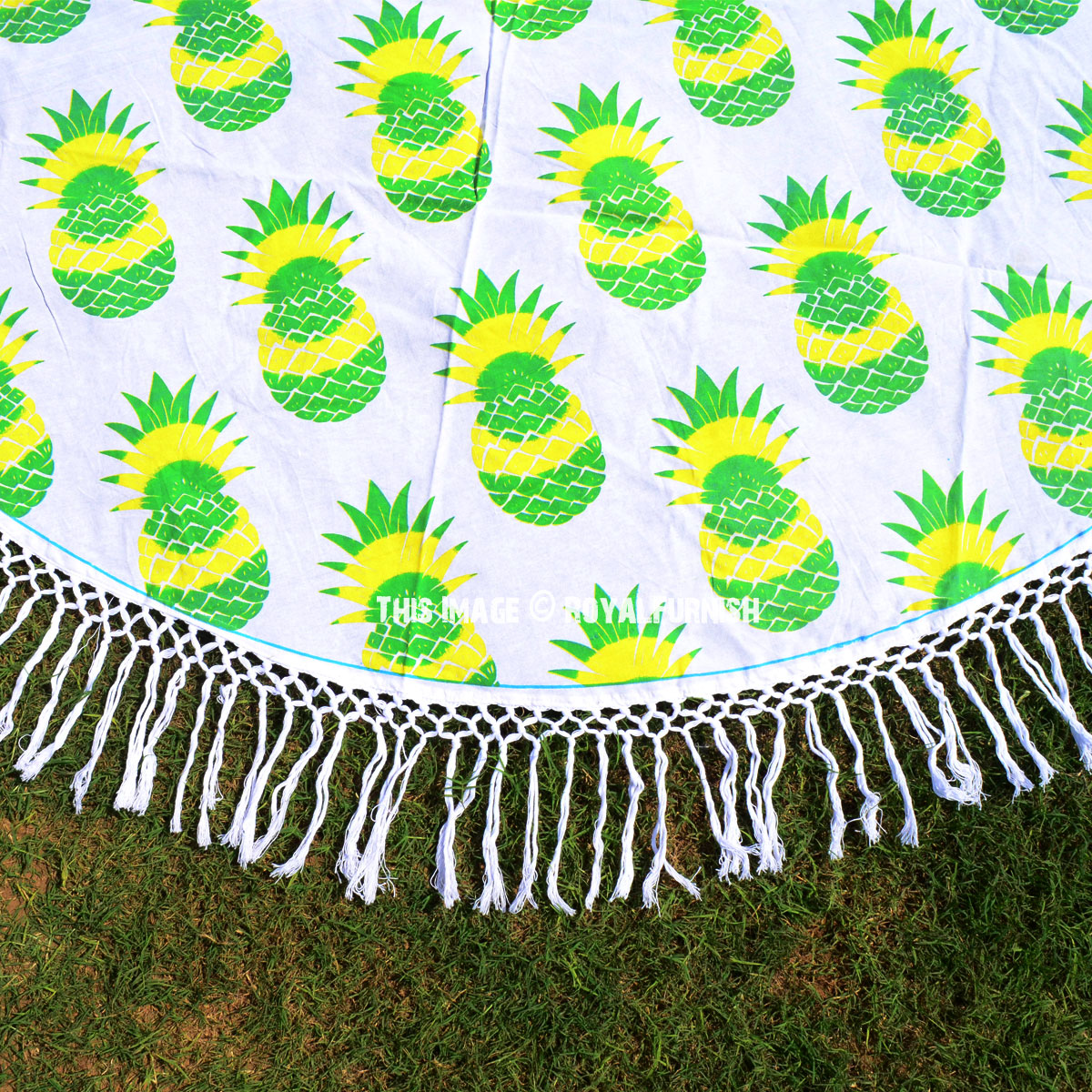 Hippie Pineapple Printed Fringed Roundie Beach Throw, Round Table Cloth