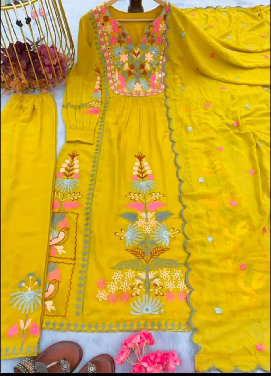 Yellow Georgette Straight Festival Wear Shalwar Kameez Suit with Mirror Sequence and Embroidery Hand Work