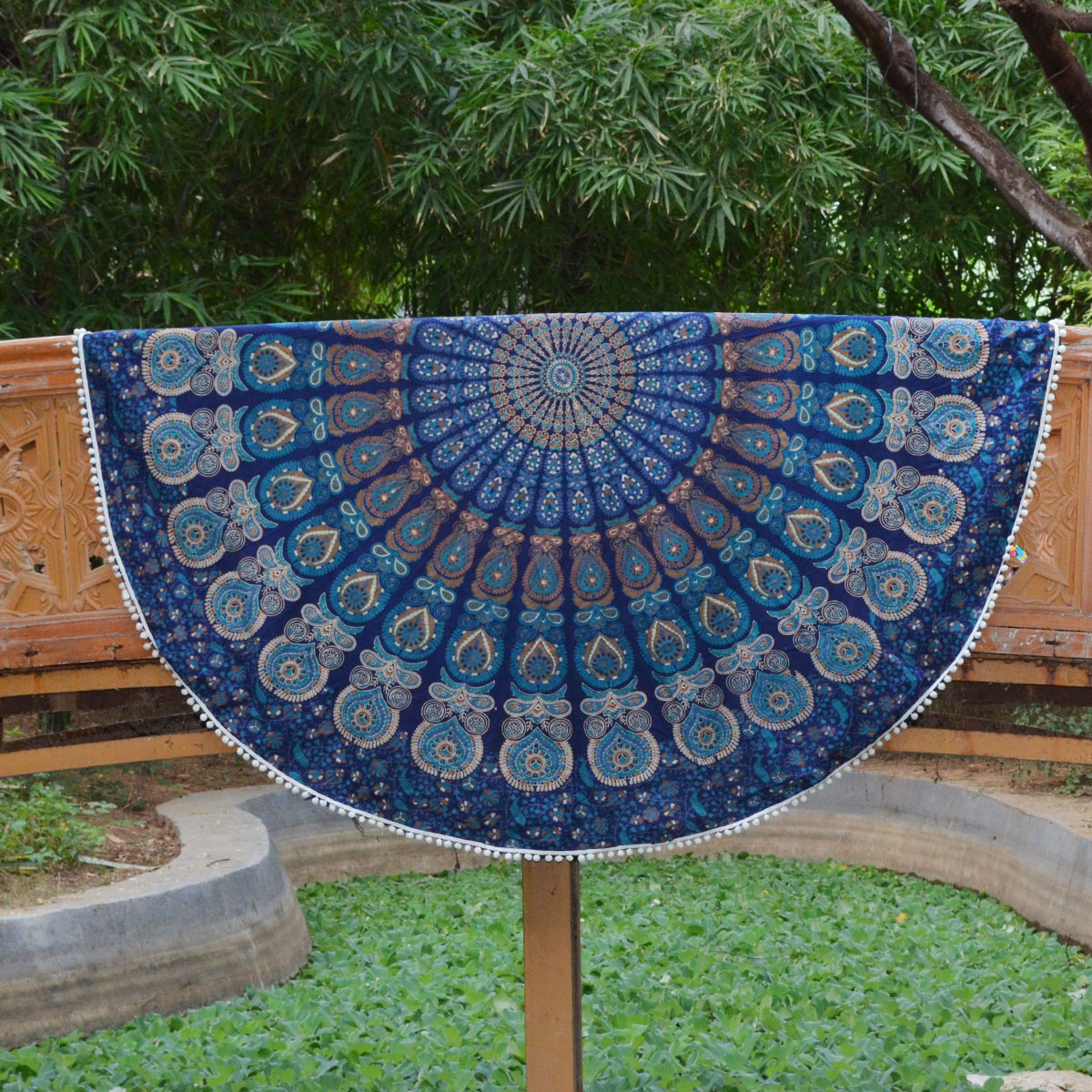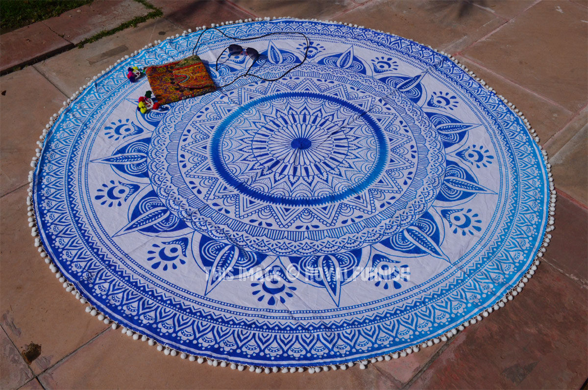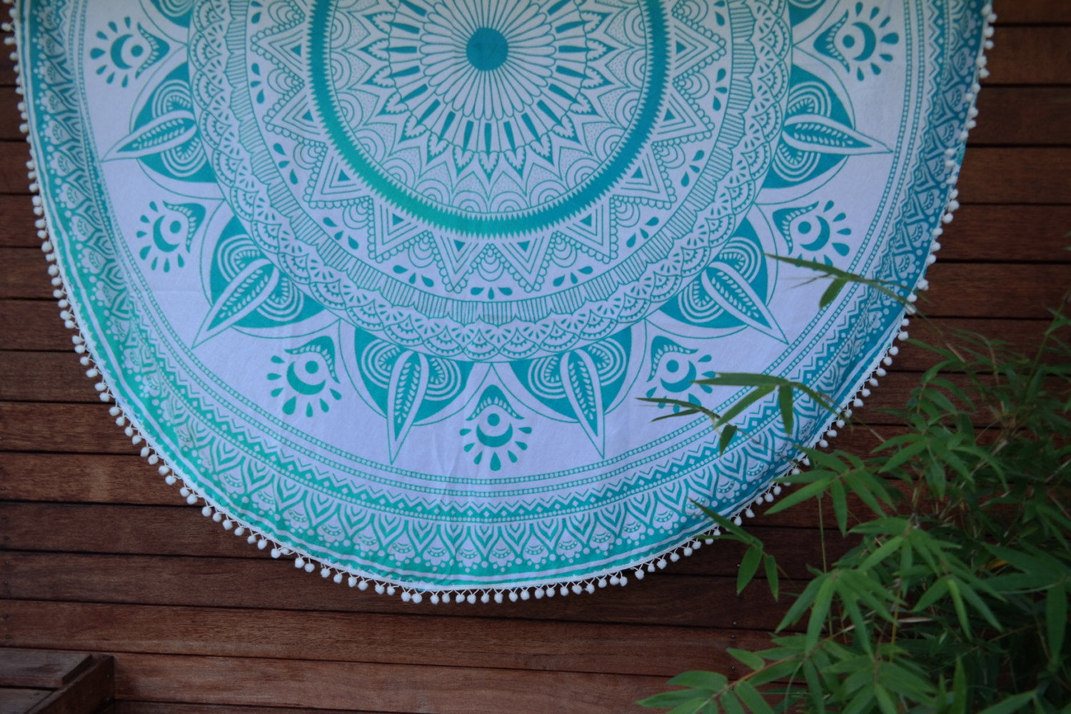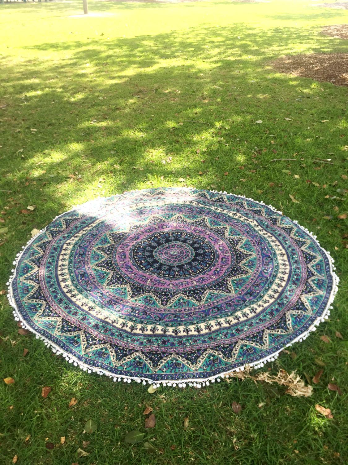 Are you planning to spend entire day at beach? We bring you gorgeous, big size, soft and light weighted round beach throw which features mandala circle that is also known as "Mandala roundies". It is 100% cotton round sheet and light weighted beach throw. The colors are very bright and vibrant as shown into the picture. It can also be used as a round tablecloth.