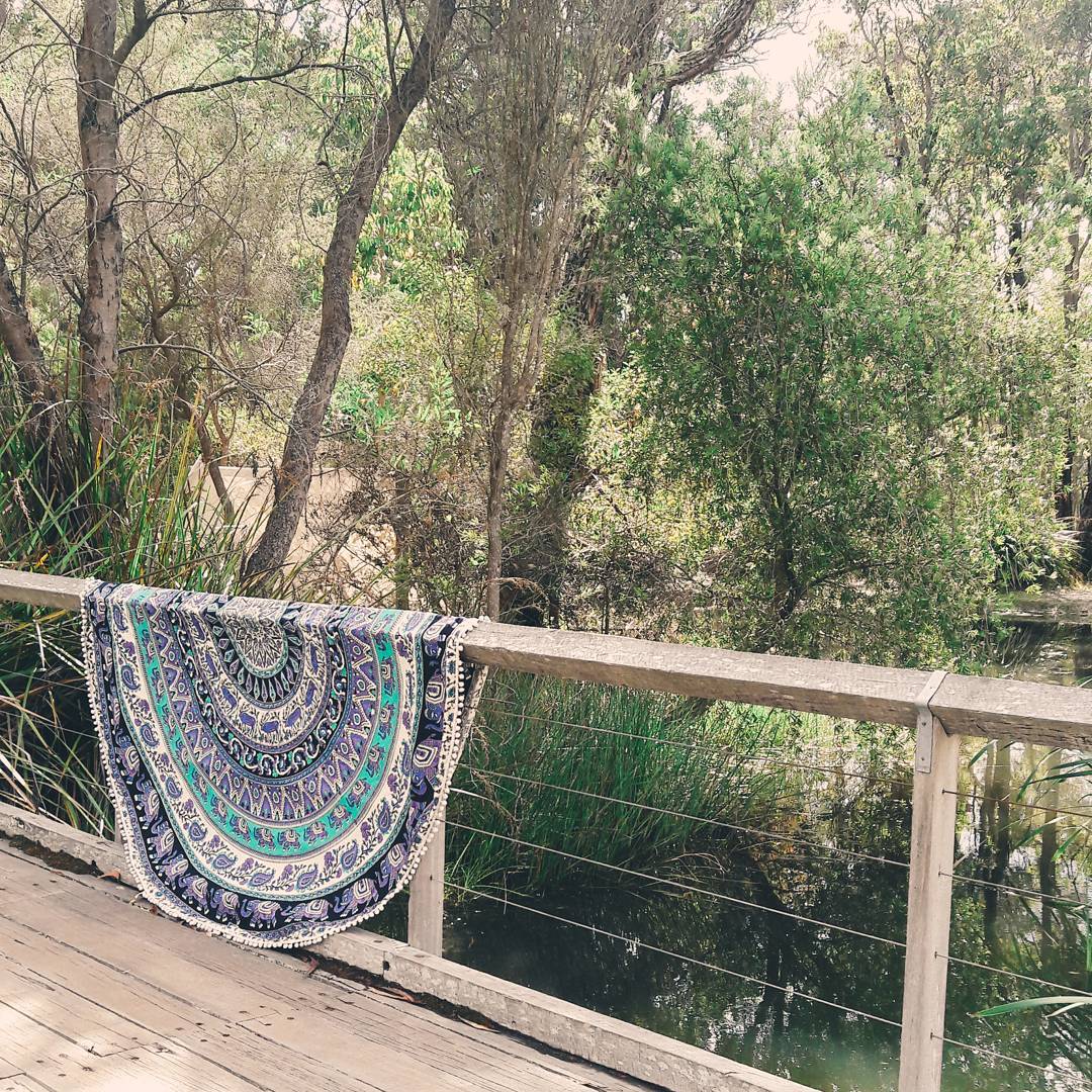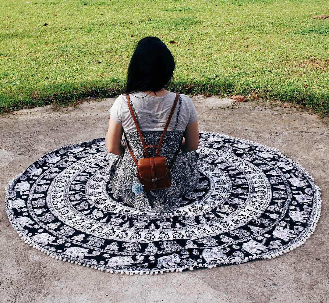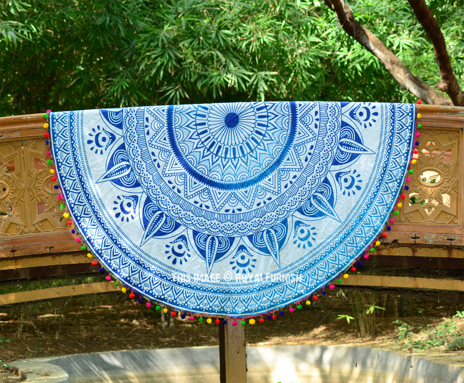 Are you planning to spend entire day at beach? We bring you gorgeous, big size, soft and light weighted round beach throw which features mandala circle that is also known as "Mandala roundies". It is 100% cotton round sheet and light weighted beach throw. The colors are very bright and vibrant as shown into the picture. It can also be used as a round tablecloth.