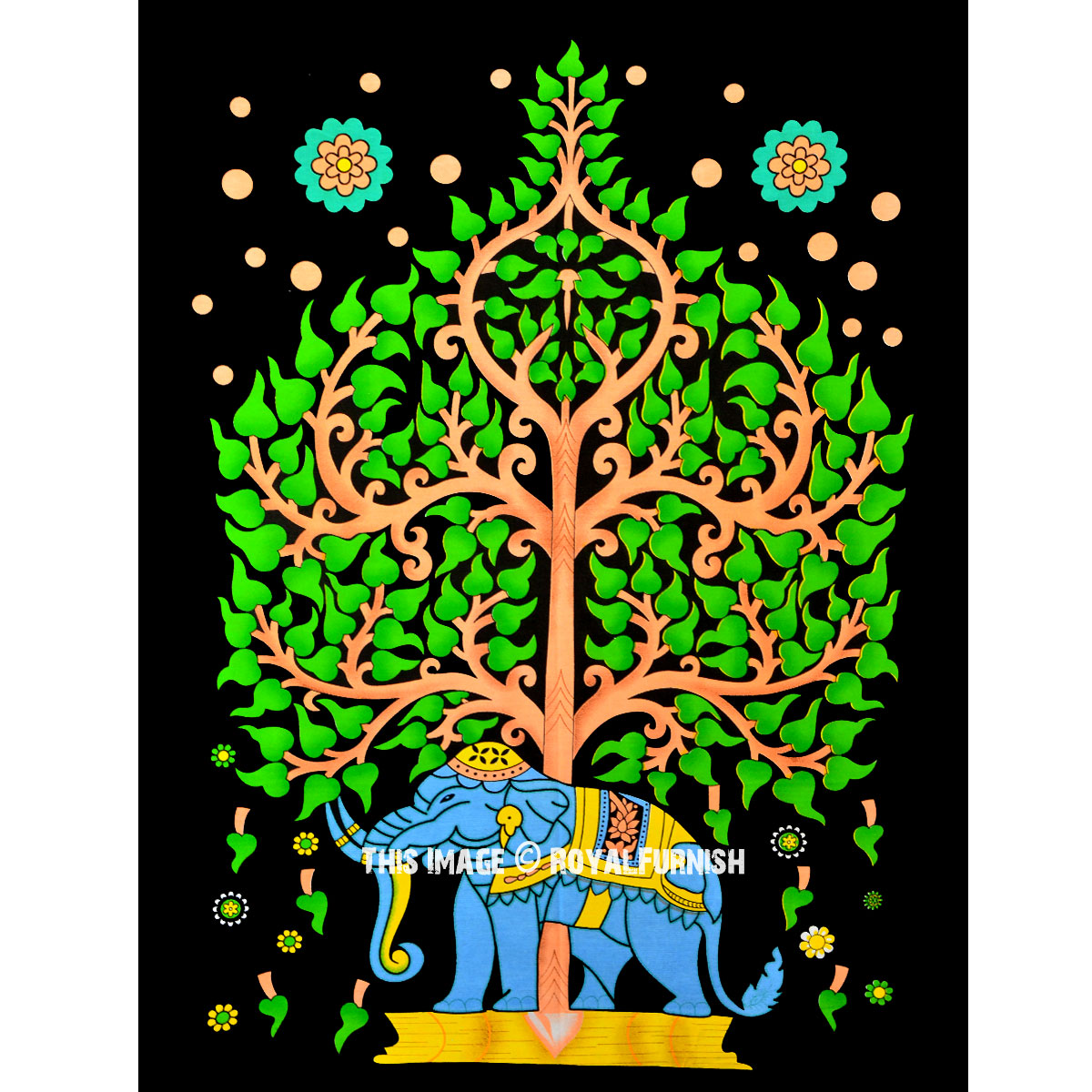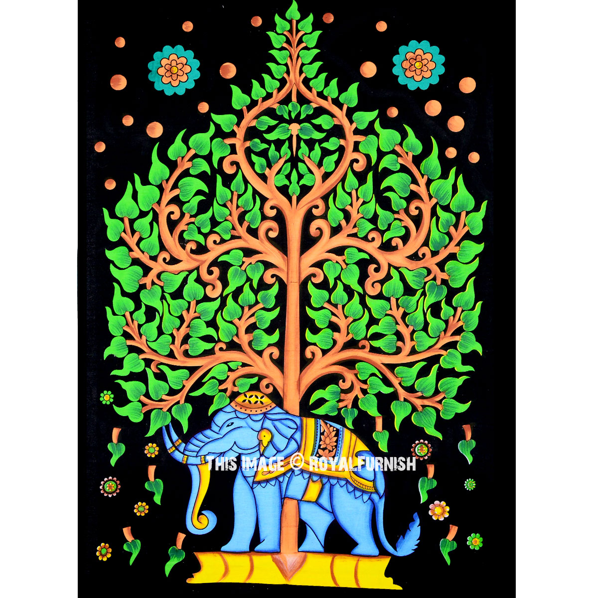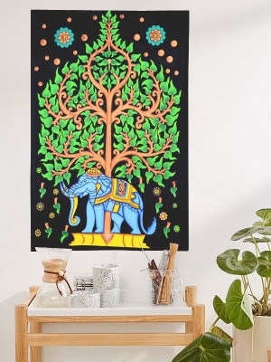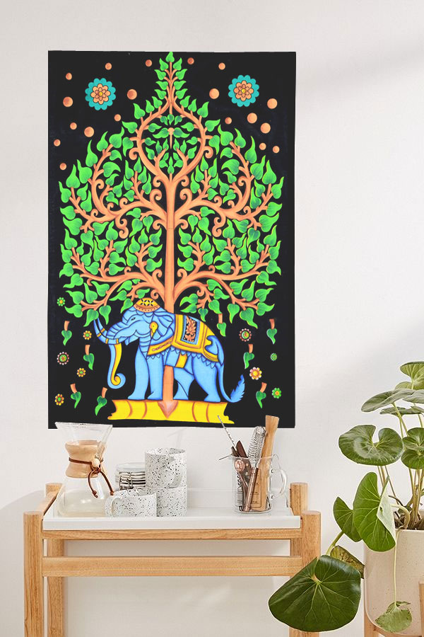 Design 1 Multi Colorful Asian Elephant Under Tree Wall Hanging Fabric Cloth Wall Poster Tapestry