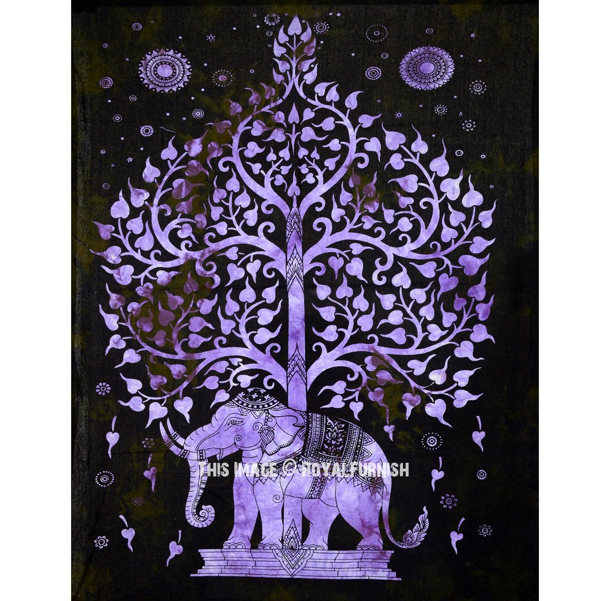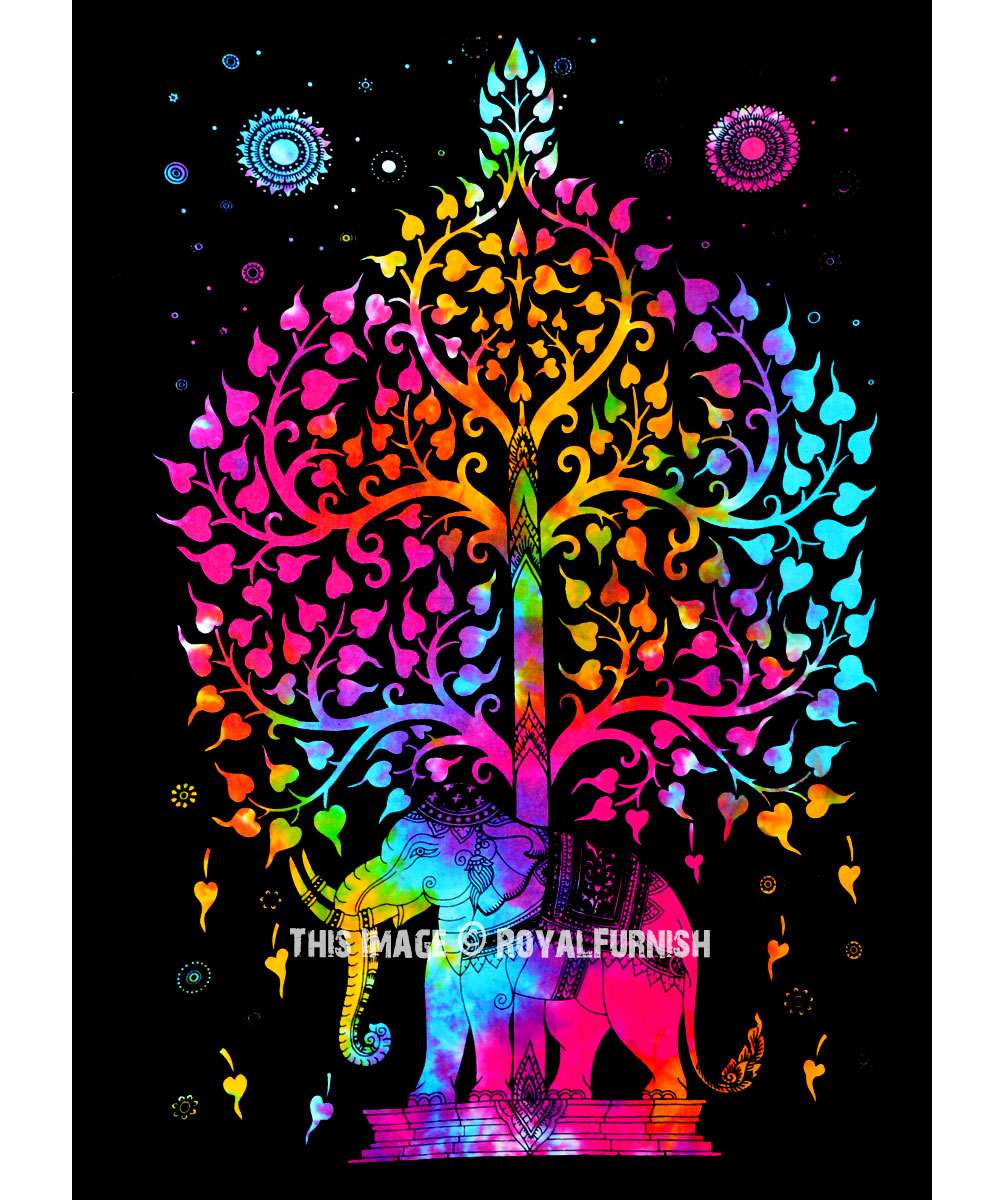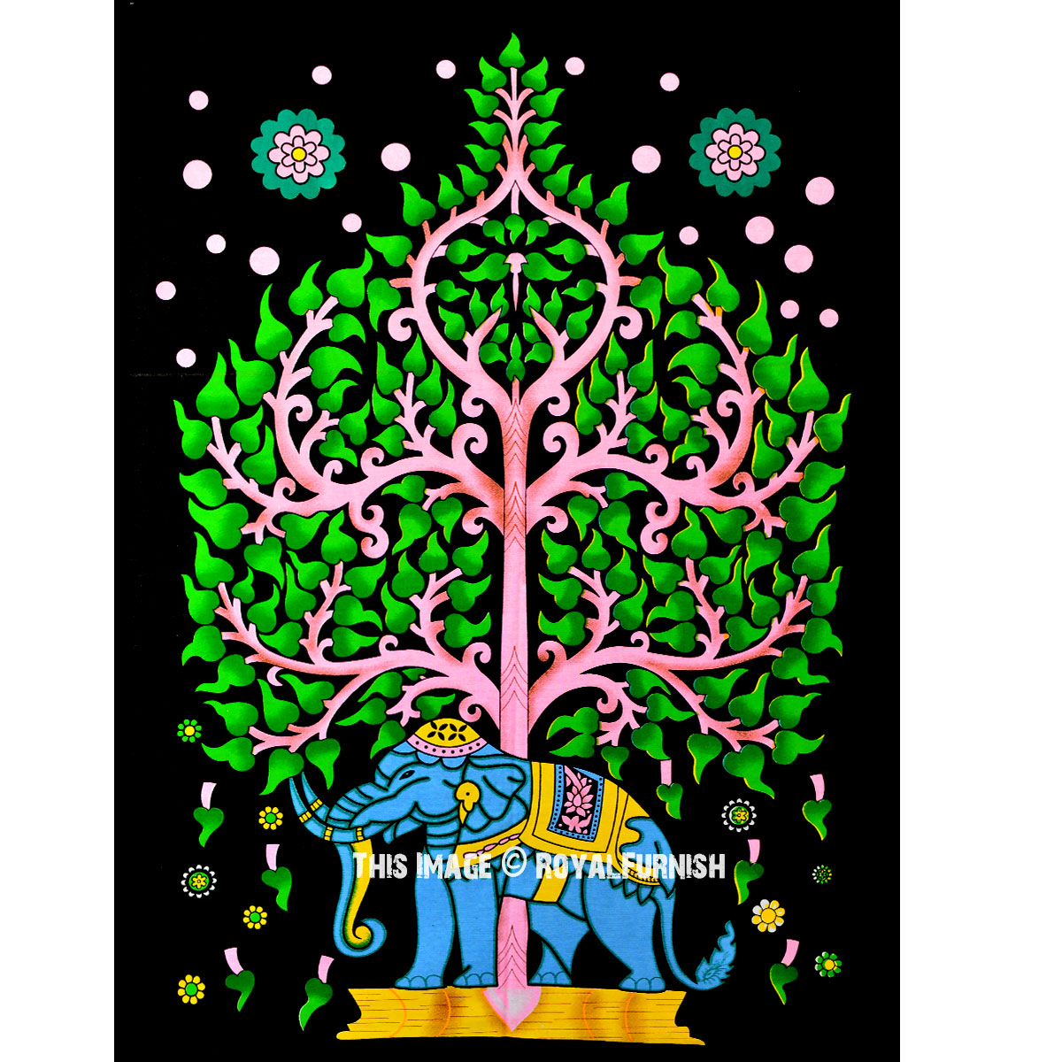 Design 1 Multi Colorful Asian Elephant Under Tree Wall Hanging Fabric Cloth Wall Poster Tapestry