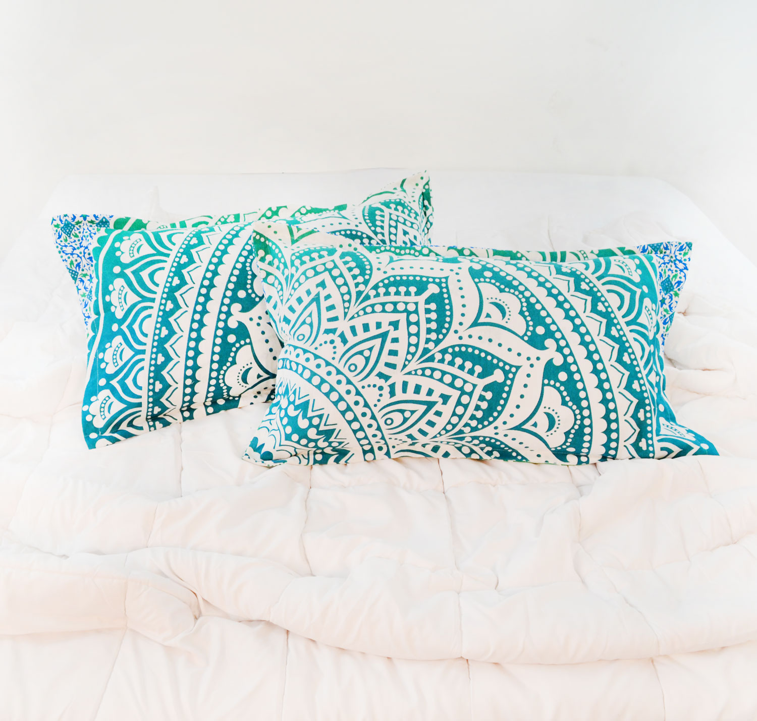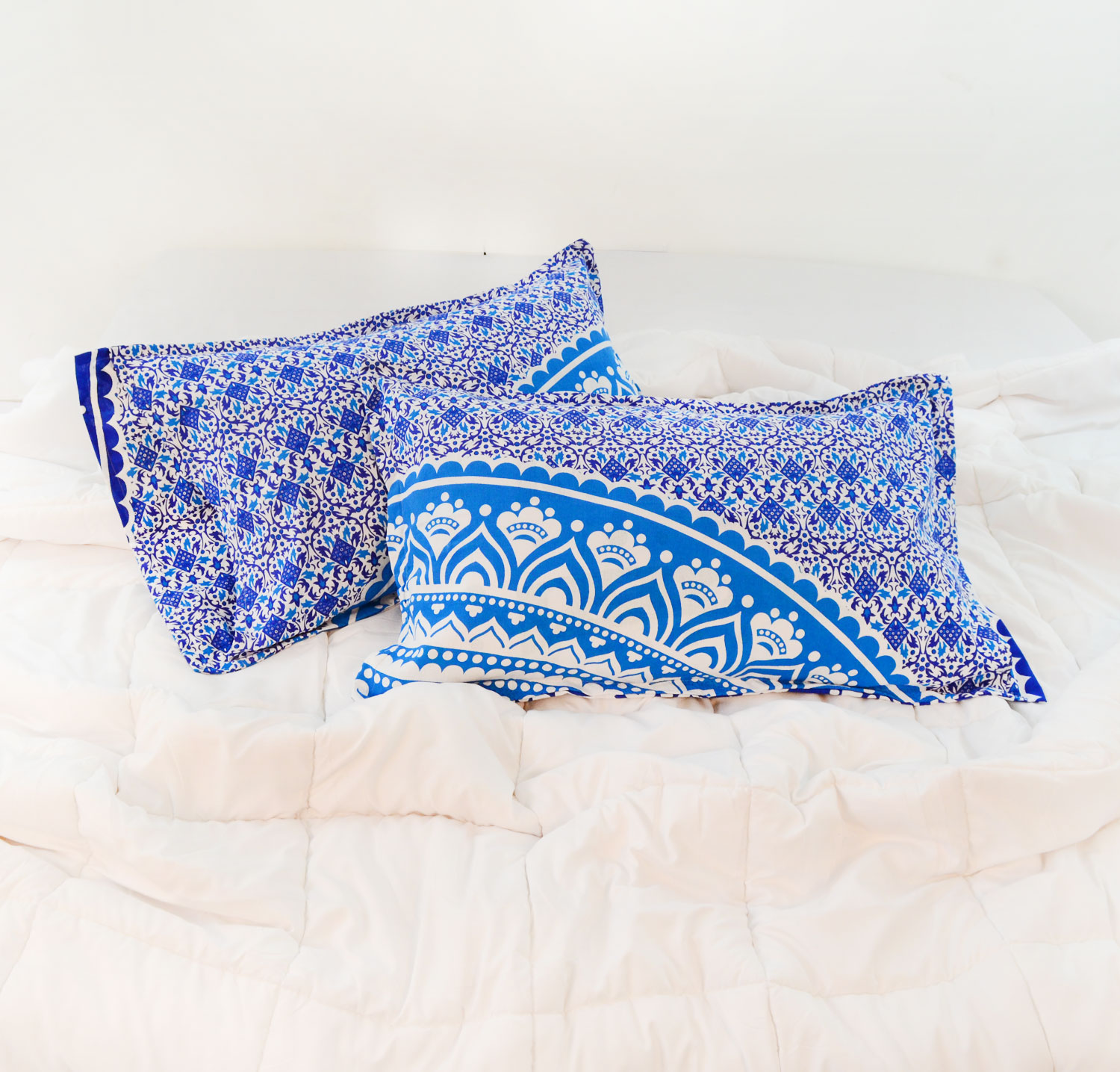 Comfortable and stylish, these elegantly mandala design printed pillowcases adds a brilliant pop of vibrant style to your bed. This cotton blend set is vibrantly sophisticated. Envelope closures on the back ensure your pillows stay snug in the sham while making it easy to insert and remove your pillows when it's time to wash.