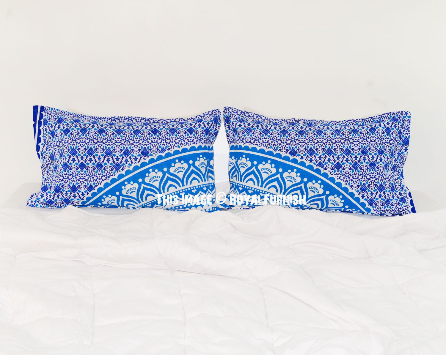 Blue Bohemian Ombre Mandala Decorative Cotton Bed Pillow Sham Set of 2
