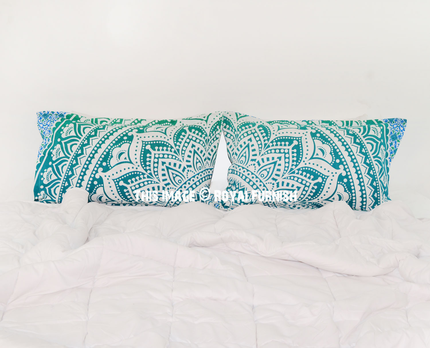 Green Bohemian Ombre Mandala Decorative Cotton Bed Pillow Sham Set of 2