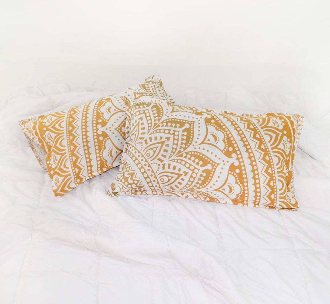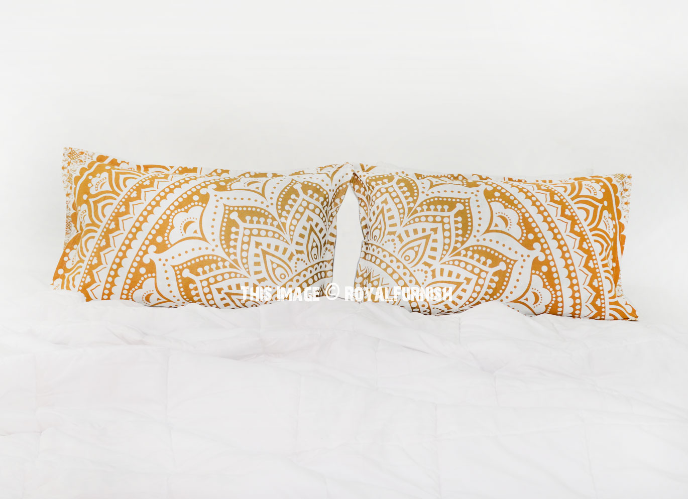Gold Bohemian Ombre Mandala Decorative Cotton Bed Pillow Sham Set of 2