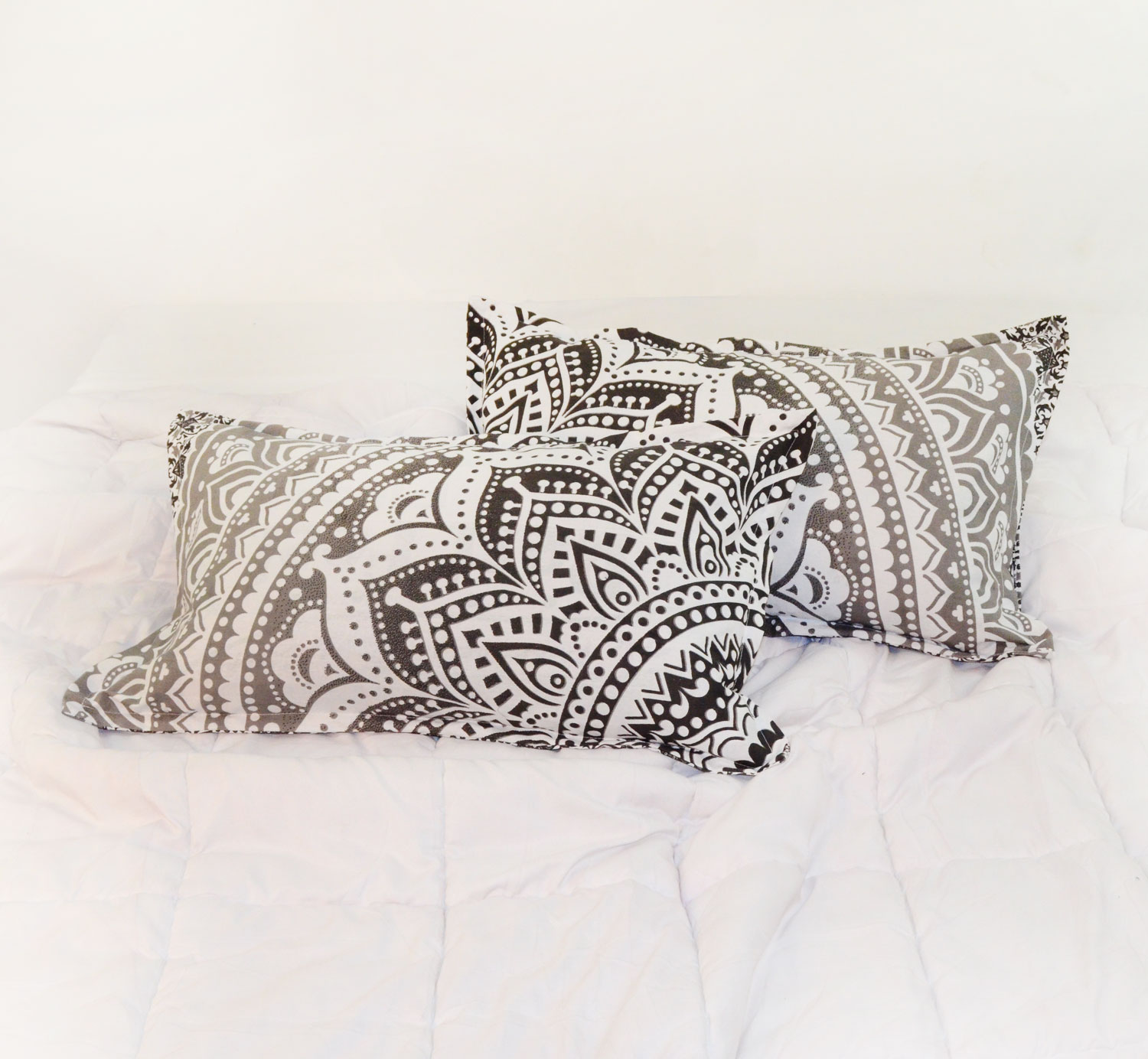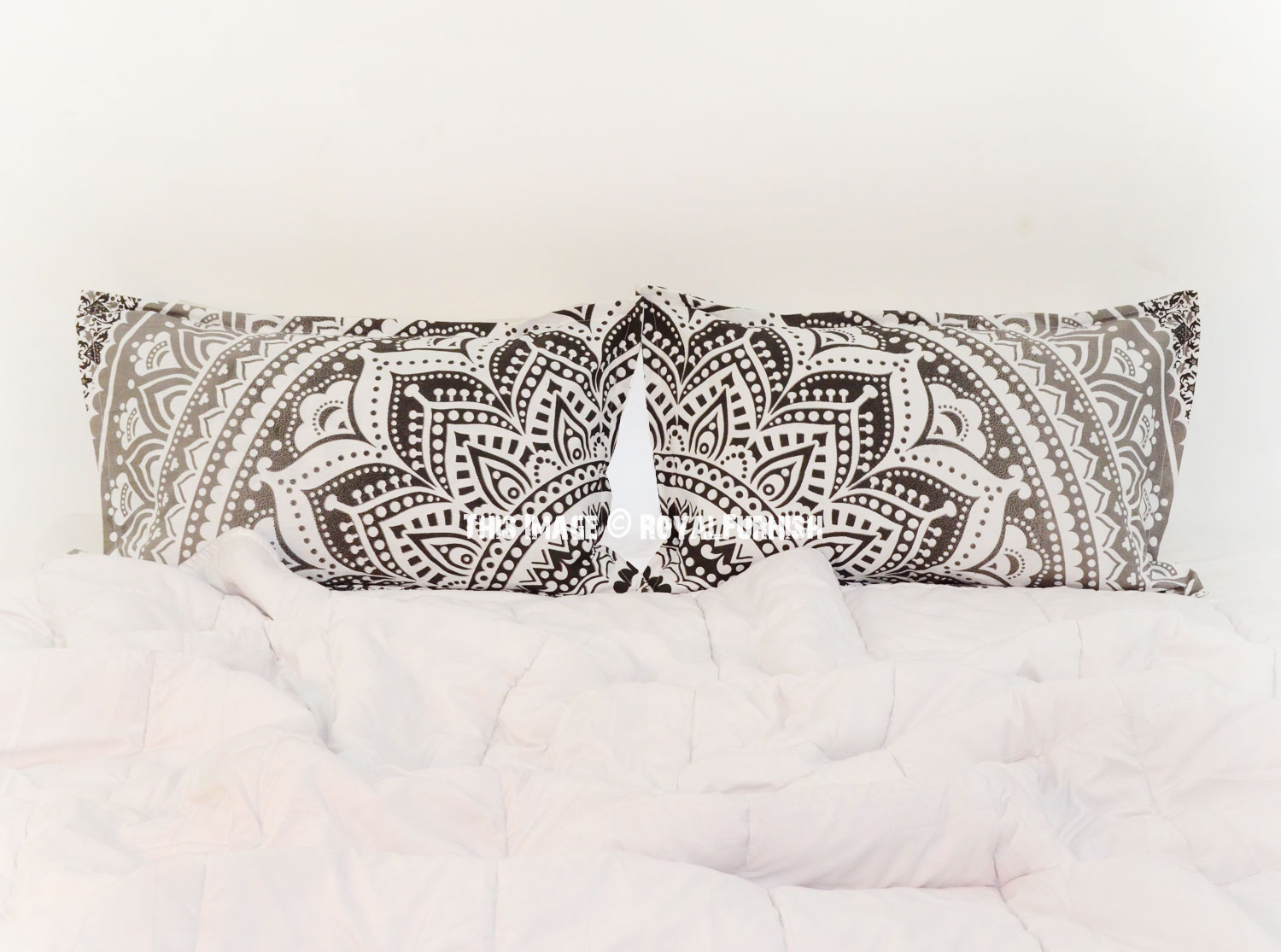 Grey Bohemian Ombre Mandala Decorative Cotton Bed Pillow Sham Set of 2