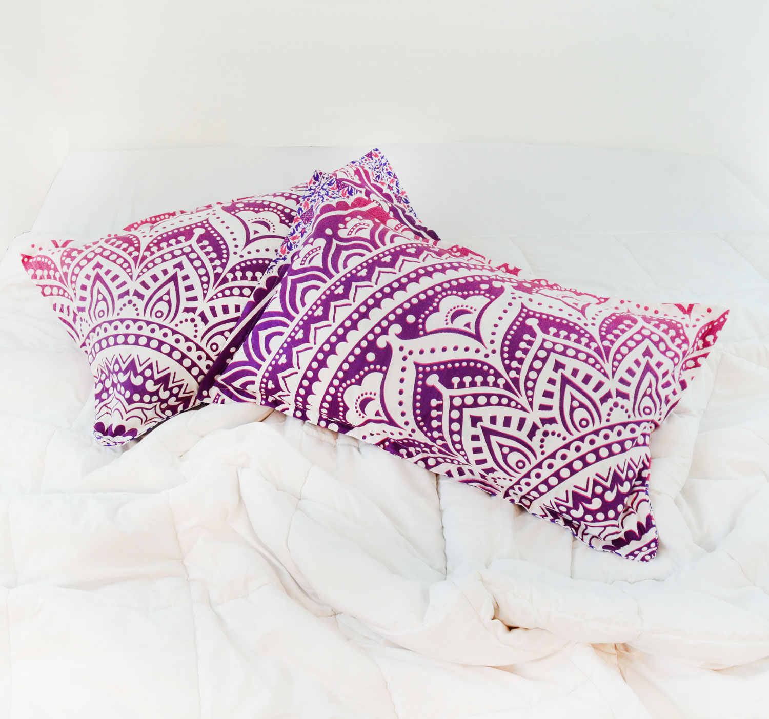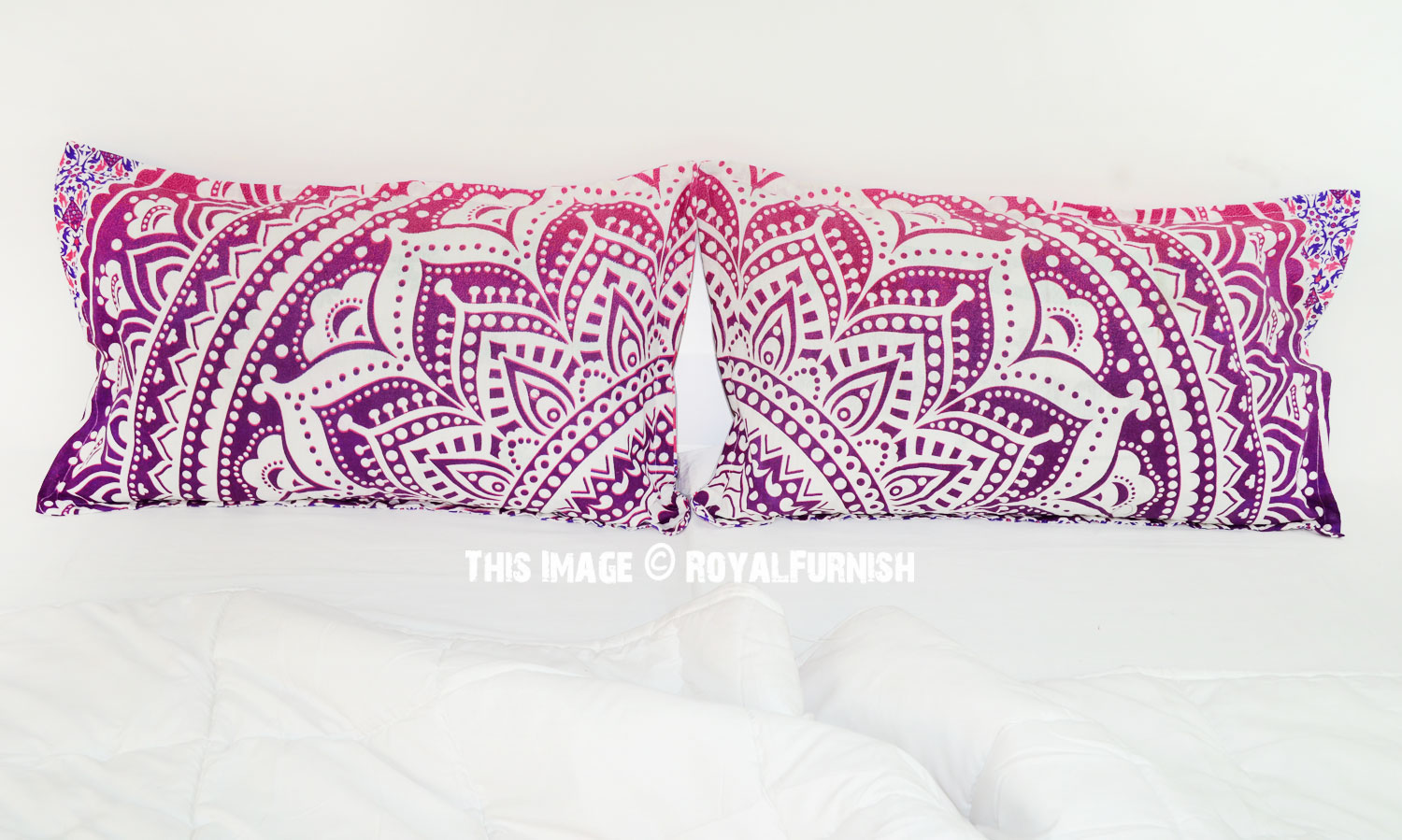 Purple Bohemian Ombre Mandala Decorative Cotton Bed Pillow Sham Set of 2