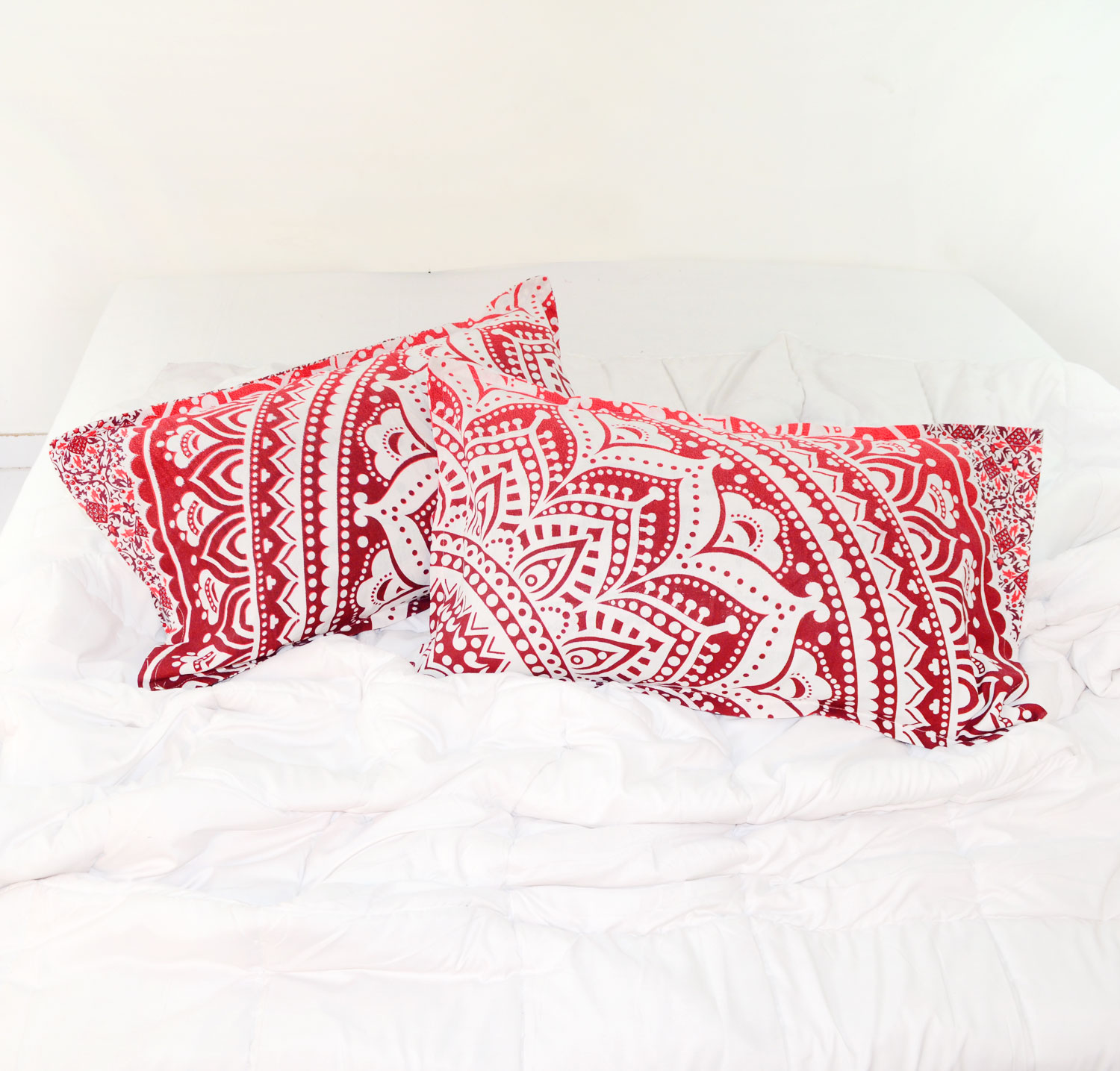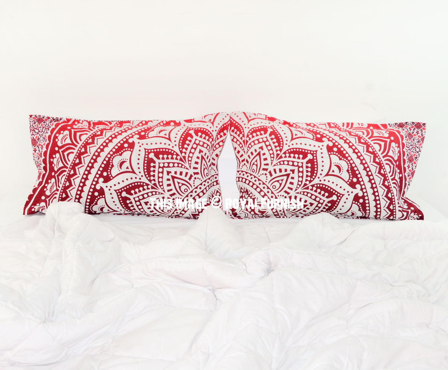 Red Bohemian Ombre Mandala Decorative Cotton Bed Pillow Sham Set of 2