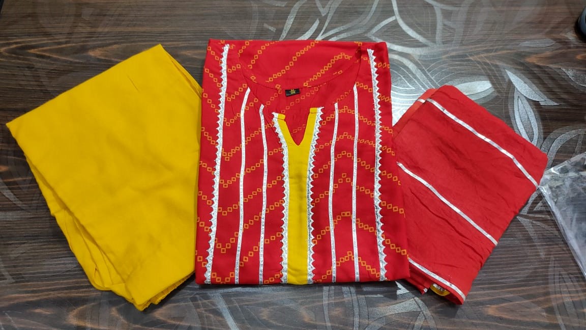 • Work: Gota work on Neck and Tie Die on Dupatta
