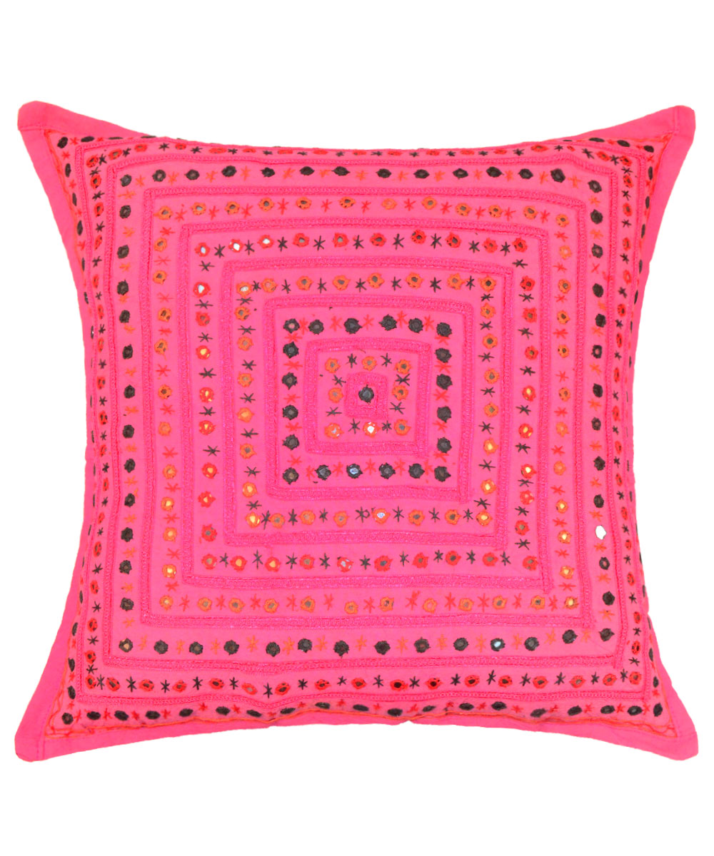 Pink 24" Unique Handmade Mirror Work Embroidered Bohemian Square Decorative Throw Pillow Case