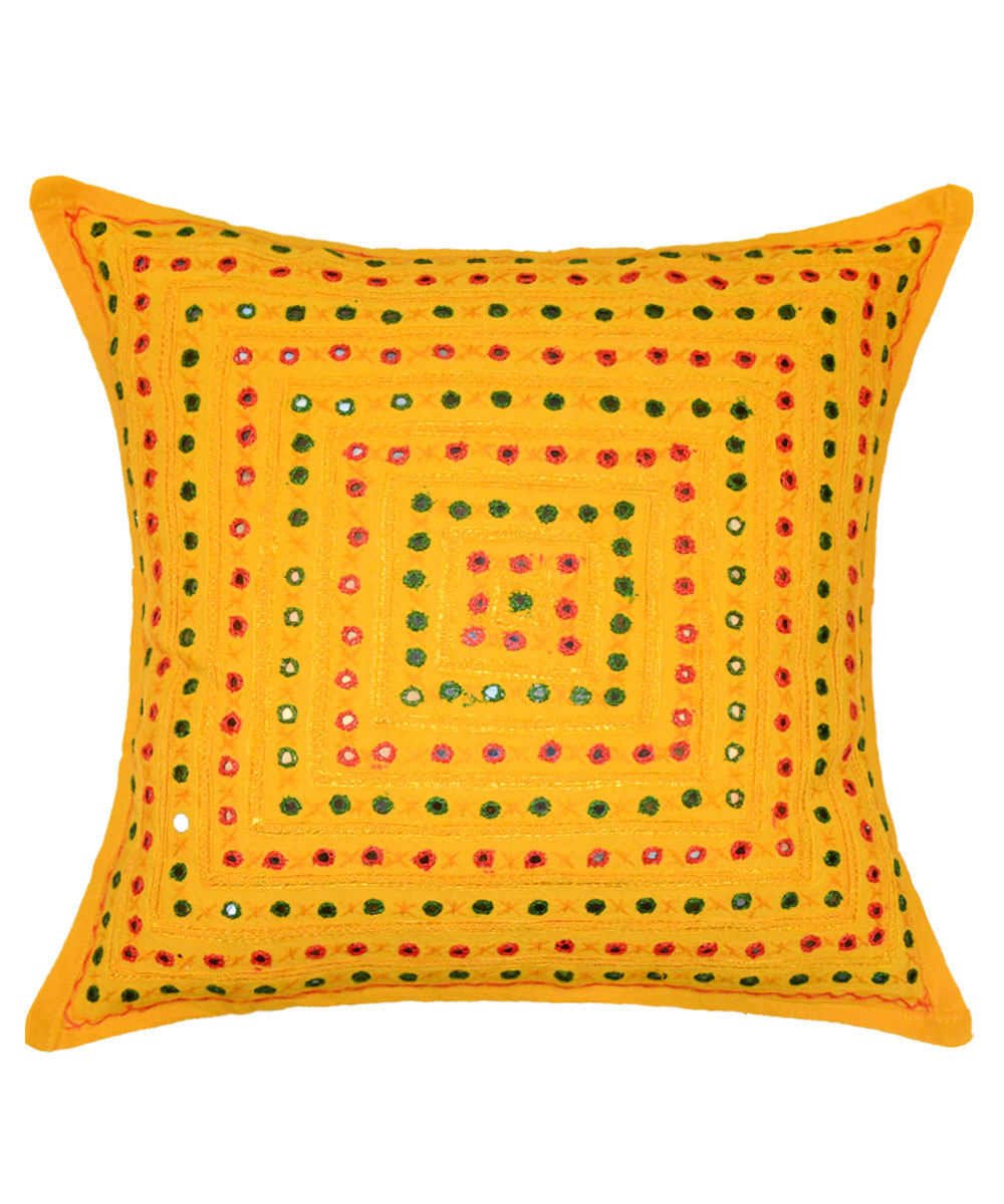 Yellow 24" Unique Handmade Mirror Work Embroidered Bohemian Square Decorative Throw Pillow Case