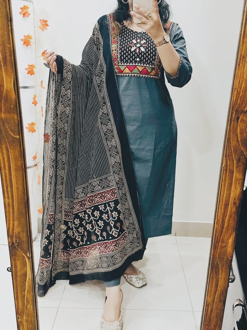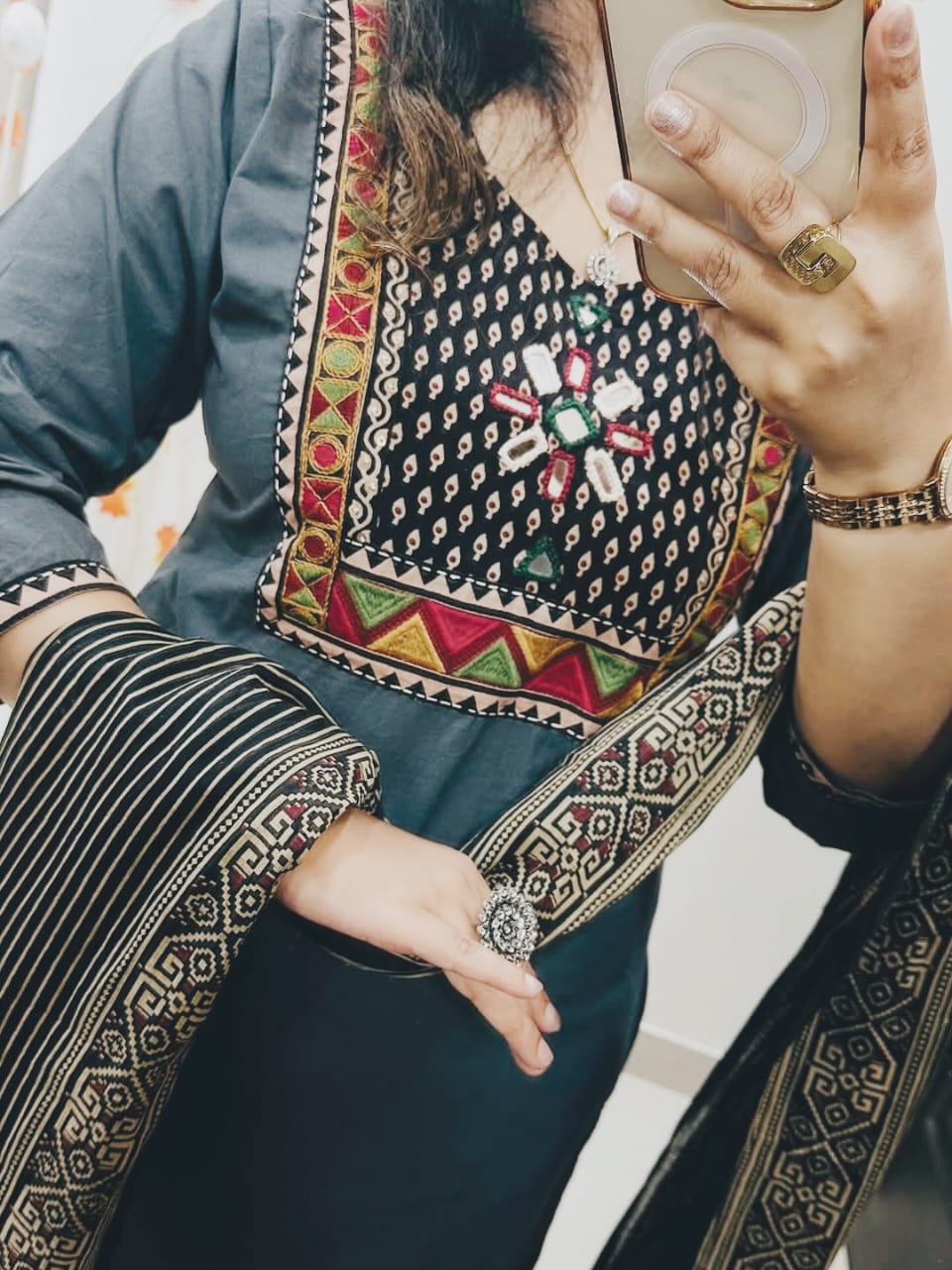 • Work: Embroidery and Mirror Work on Dress